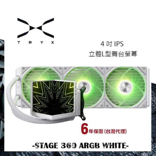 TRYX限時下殺 STAGE 360 白 ARGB 立體L型舞台螢幕 水冷散熱器 一體水冷 TDP280/Asetek/3D螢幕