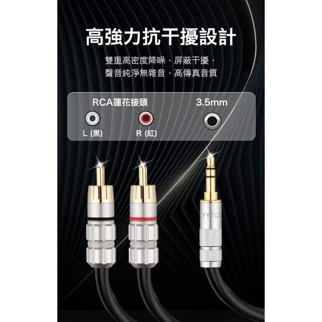 YYTCG 3.5mm轉RCA蓮花端子音源線 鍍金接頭 手機/擴大機/吉他連接音響 (30-229-01)