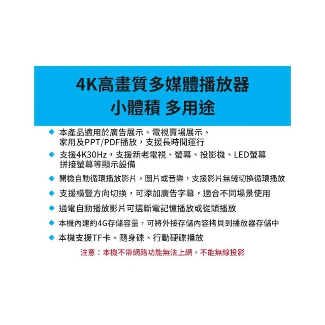 易控王 4K 迷你版 HDMI多媒體自動循環播放器 影片/圖片循環播放 廣告展示 PPT幻燈片播放 50-303-01