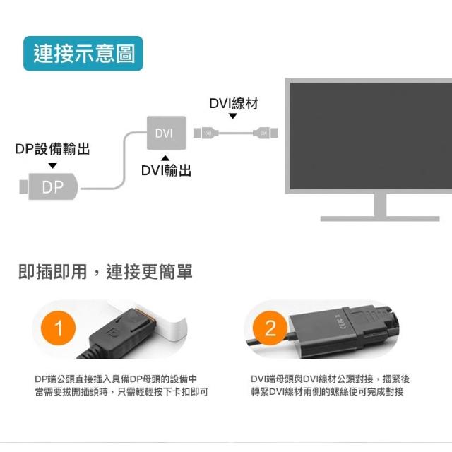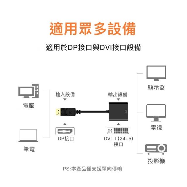 易控王 Displayport轉DVI轉接頭 DP公轉DVI母轉接頭 1080P (40-717-03-01)