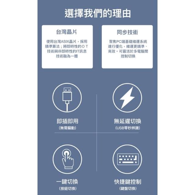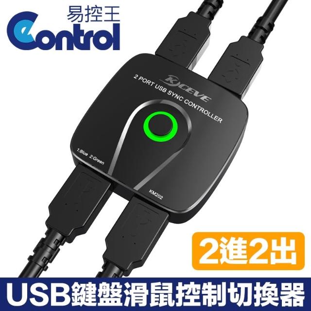 易控王 2PORT USB鍵盤滑鼠 同步切換穿越控制器 切換/同步 (40-121-04)