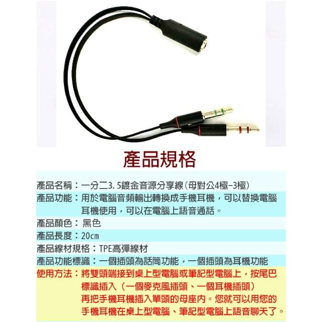 易控王 一分二3.5鍍金音源分享線 母對公4極-3極 麥克風 耳機 二合一 音頻轉接頭線 (40-722-01)