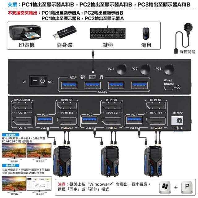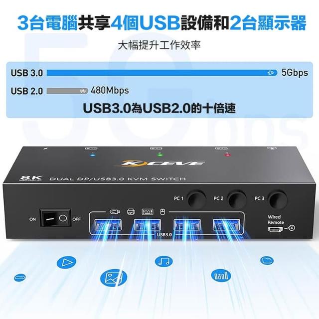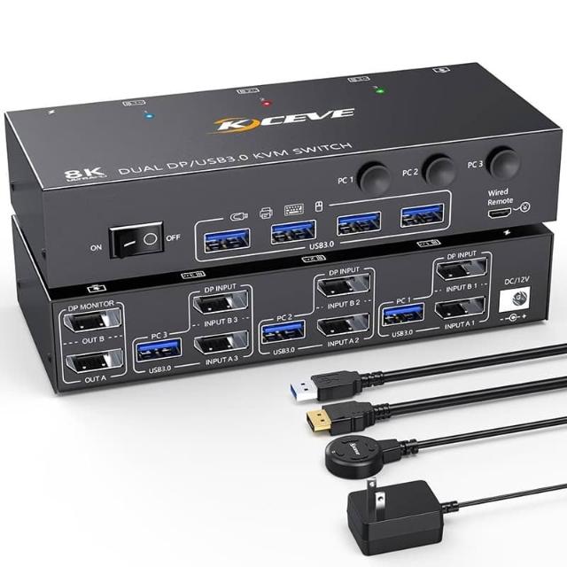 econtrol 易控王【易控王】DP三進一出KVM切換器|支援8K雙螢幕輸出|4埠USB3.0 (40-116-05-05)