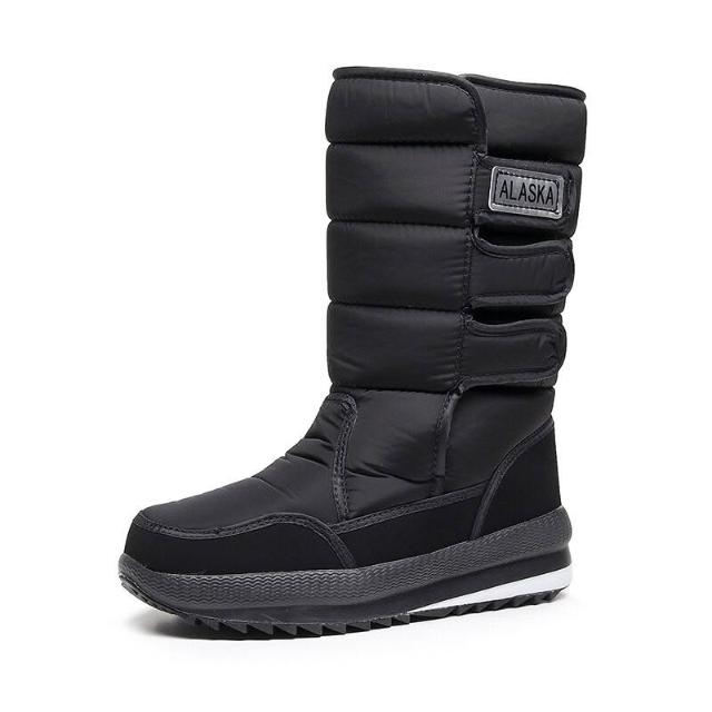 雪靴女中筒雪地靴冰爪防滑防水雪靴女款加絨保暖長靴子女童厚底極寒雪地鞋大尺碼冬季戶外登山防寒女鞋韓國增高寬版女靴黑色雪鞋
