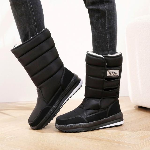 雪靴女中筒雪地靴冰爪防滑防水雪靴女款加絨保暖長靴子女童厚底極寒雪地鞋大尺碼冬季戶外登山防寒女鞋韓國增高寬版女靴黑色雪鞋