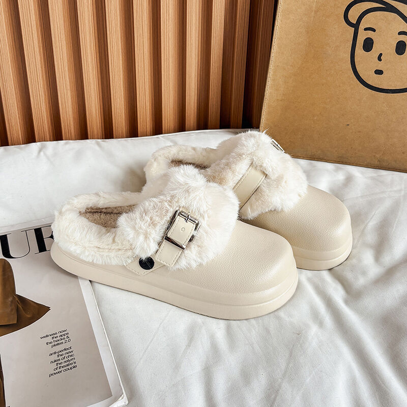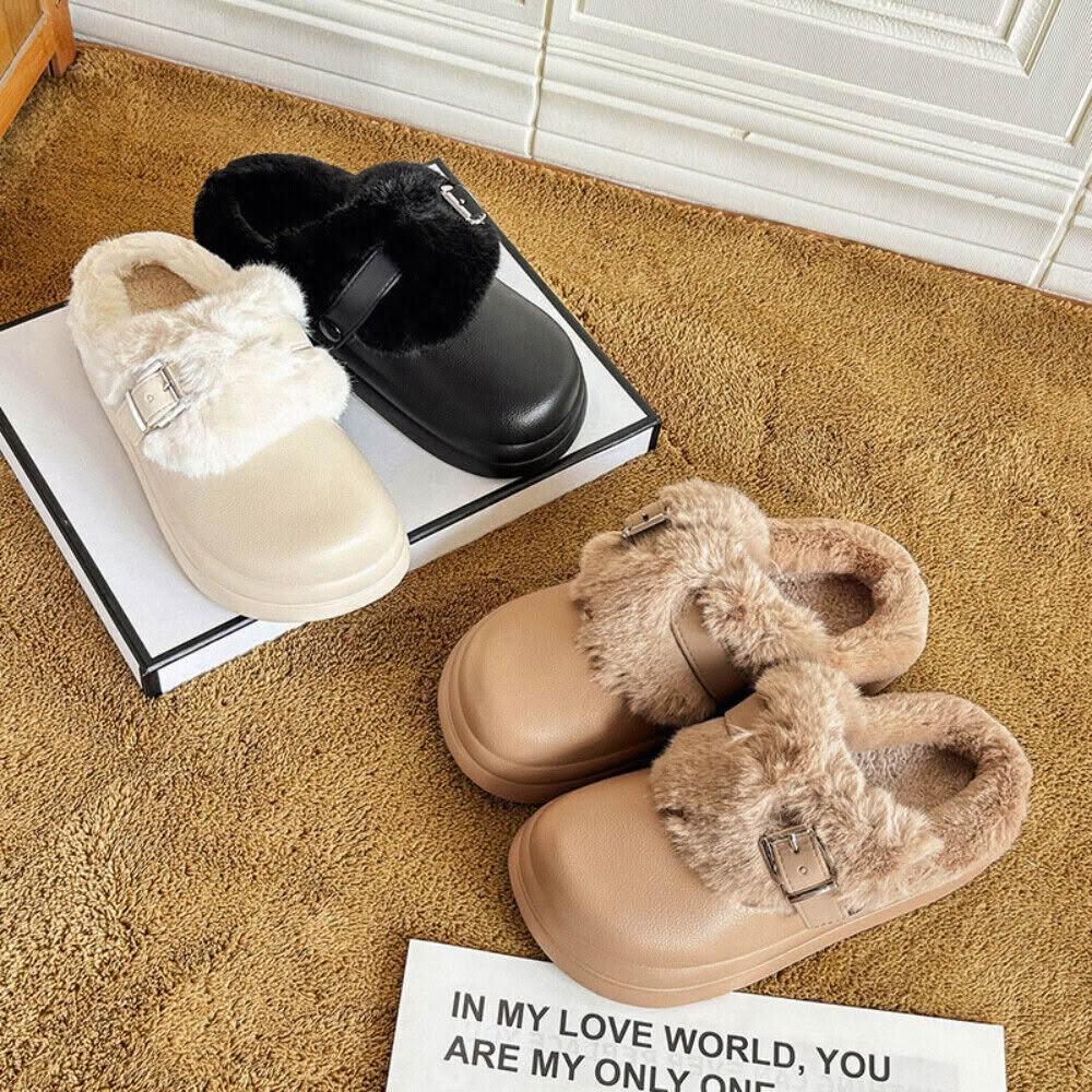 勃肯鞋女款保暖防寒雪地鞋厚底防滑防水穆勒鞋大尺碼包頭拖鞋軟底懶人鞋輕便廚師鞋女生時尚百搭增高休閒鞋室內室外毛毛平底半拖鞋