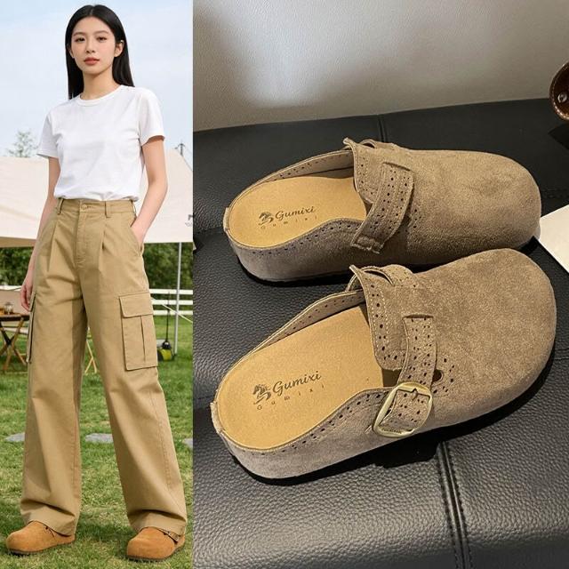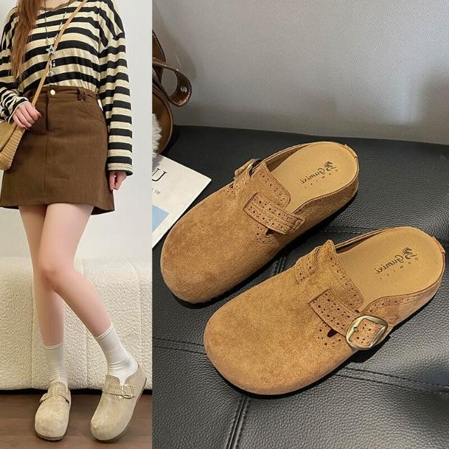 勃肯鞋女款厚底防滑防水穆勒鞋大尺碼止滑包頭拖鞋軟底懶人鞋輕便透氣廚師鞋韓國時尚百搭增高休閒鞋室內室外女生一腳蹬平底半拖鞋