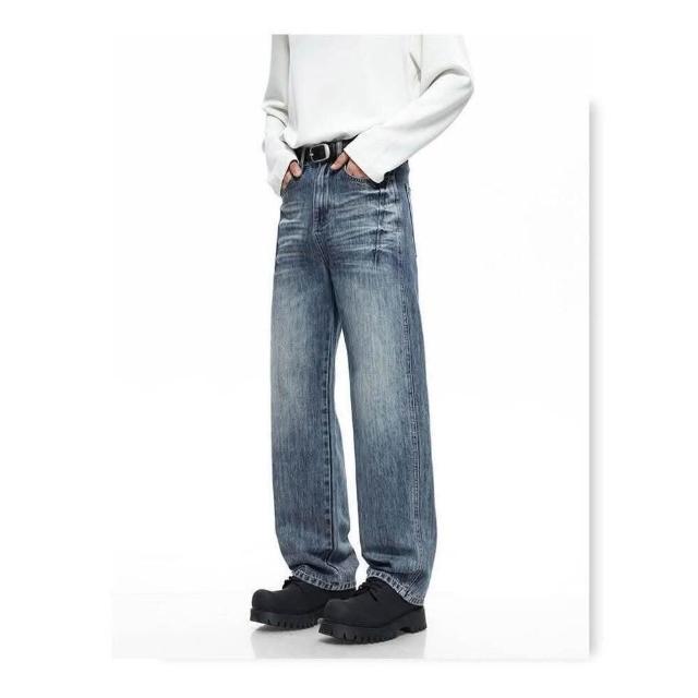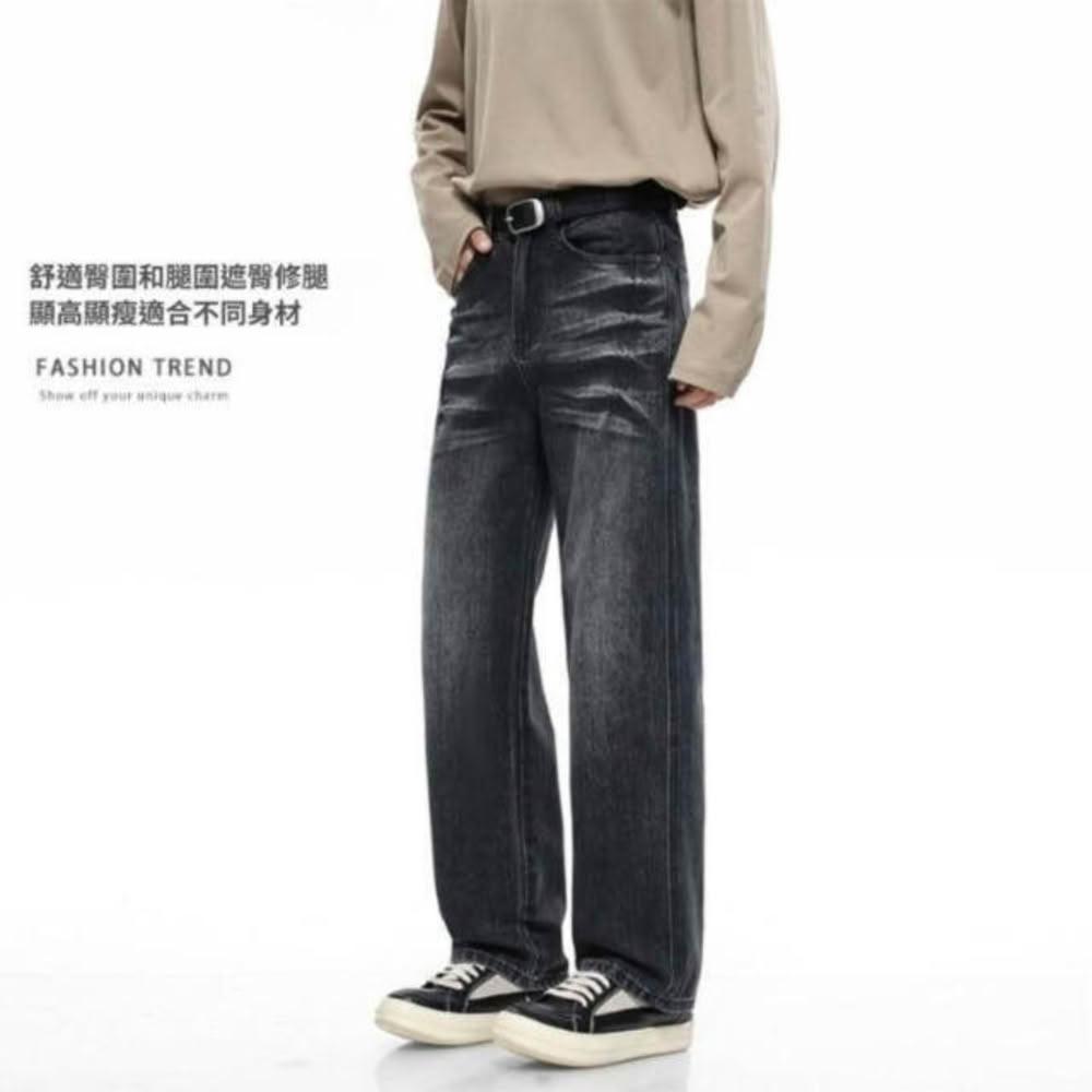 牛仔褲男夏季爆款潮流高品質美式復古水洗長褲男士百搭寬松直筒褲男潮牌窄版時尚牛仔長褲機能寬褲休閒褲耐磨登山褲垂感韓國彎刀褲