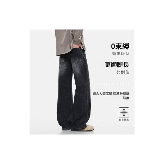 休閑褲男美式復古水洗小眾設計感高檔牛仔褲男女寬松直筒闊腿秋冬舒適百搭牛仔長褲防風保暖褲闊腿工作褲寬鬆運動褲工裝褲低腰水洗