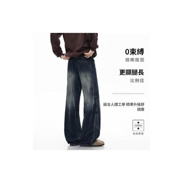 休閑褲男牛仔褲美式復古水洗男女直筒寬松彎刀闊腿情侶褲潮牌痞帥高級感潮流百搭時尚長褲寬鬆運動褲工裝褲低腰水洗機能寬褲大尺碼
