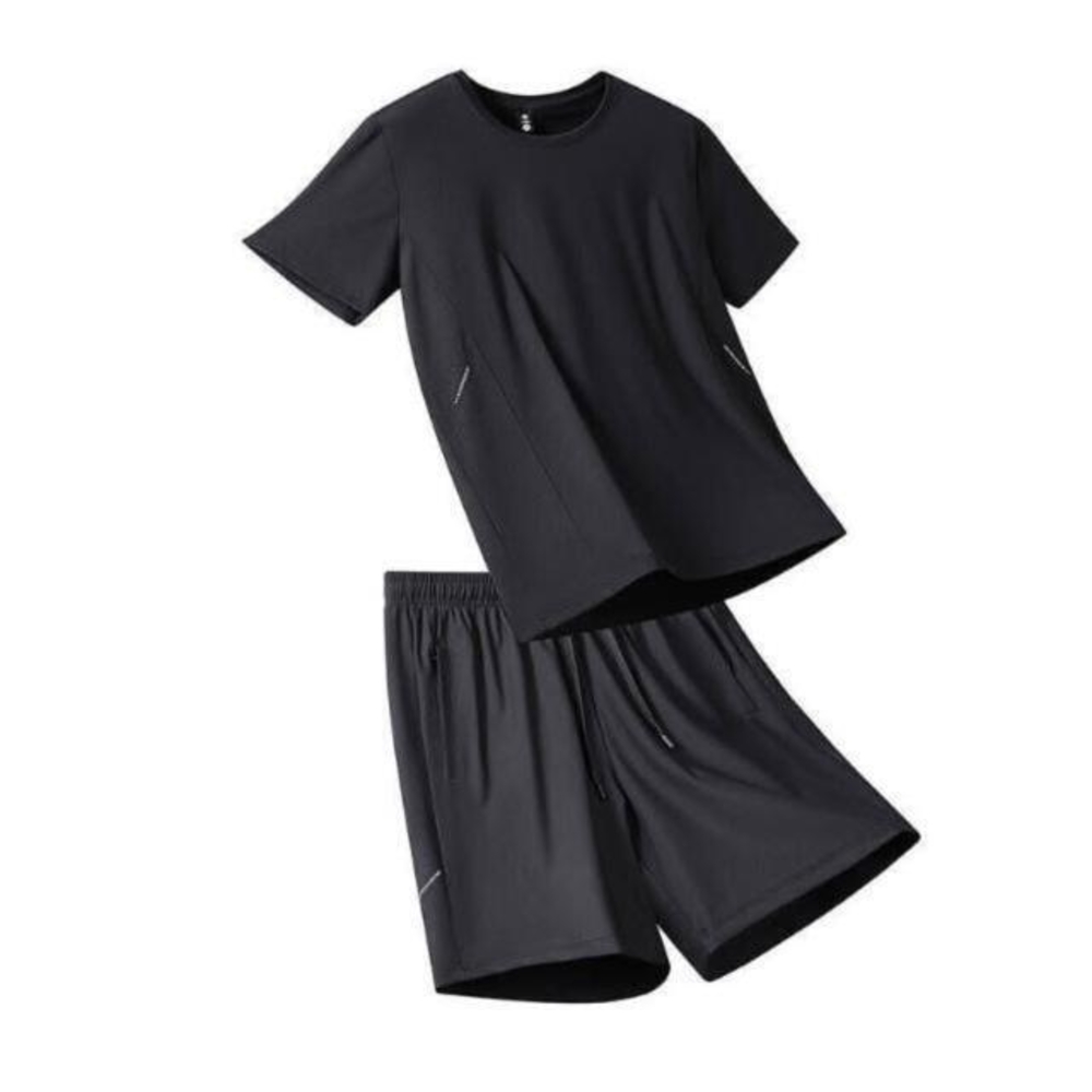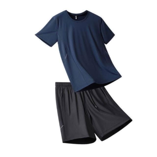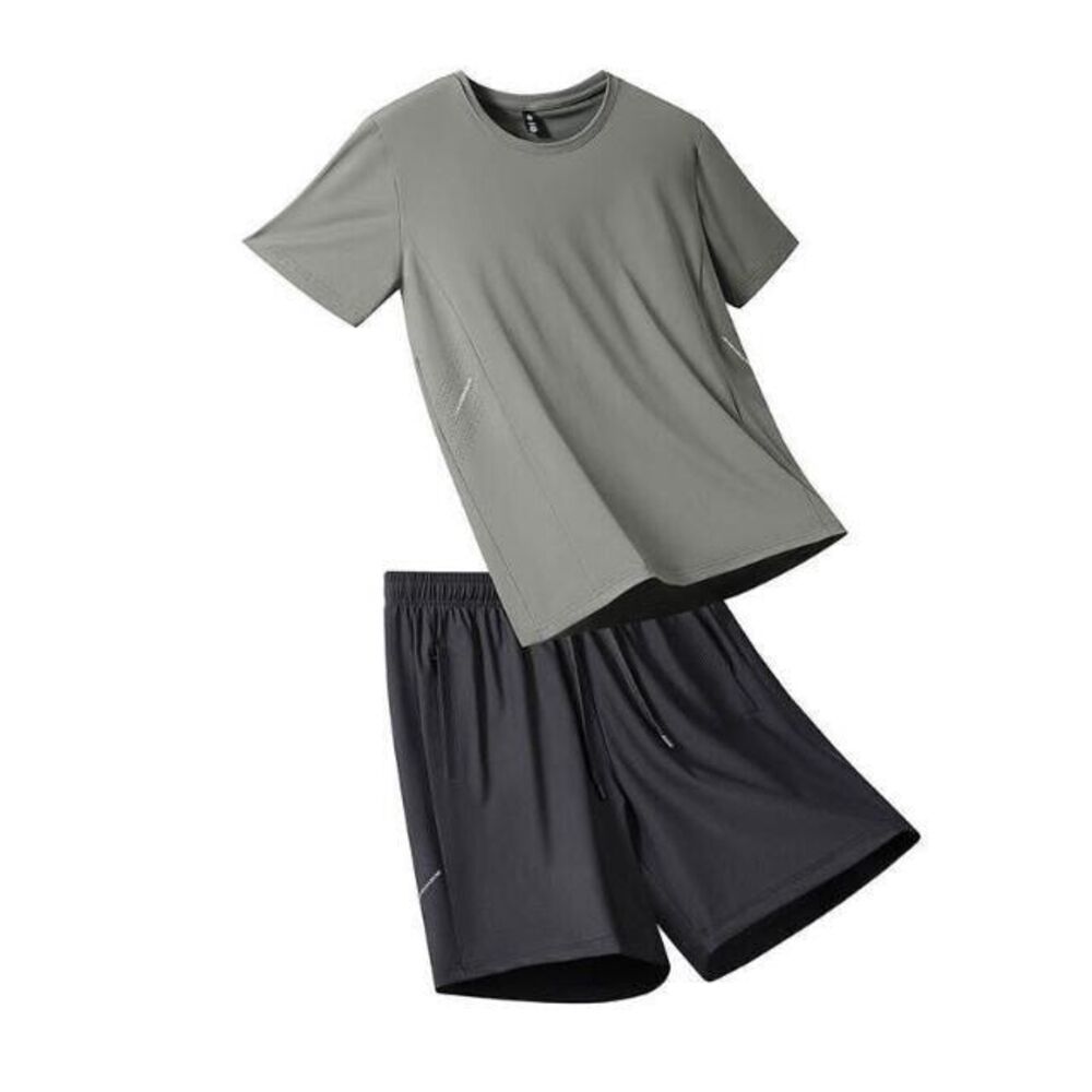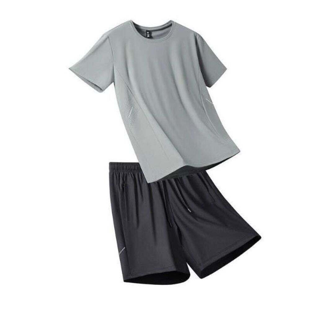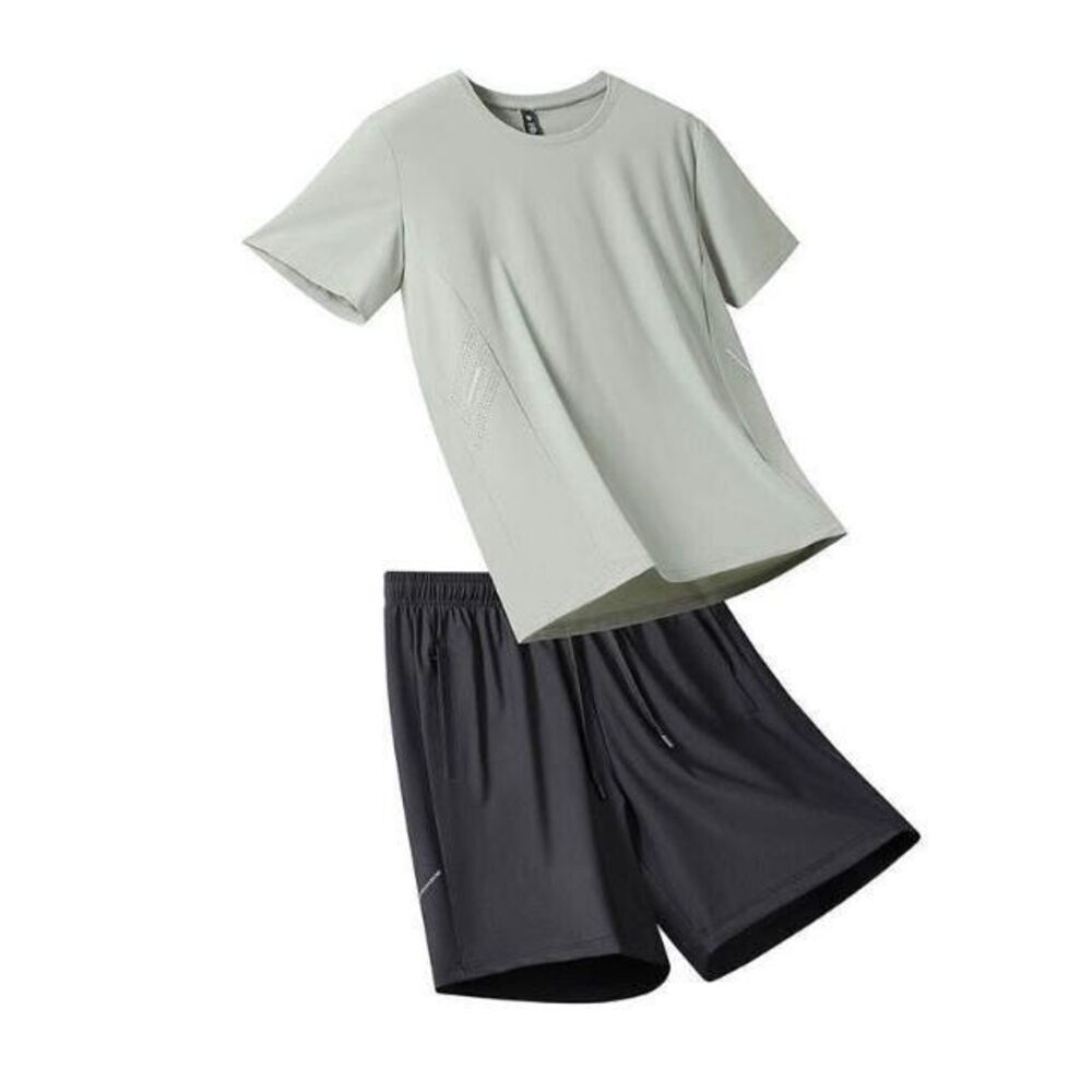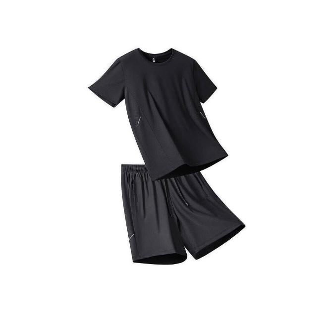 運動套裝男夏天輕薄透氣網眼冰絲衣吸濕排汗短袖速乾衣速乾T恤青年大尺碼戶外工作健身登山休閒服排汗衣寬鬆彈力冰絲涼感運動上衣