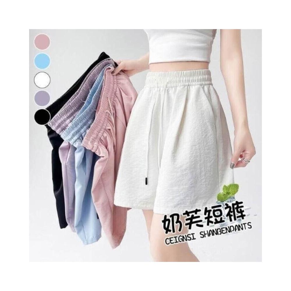 運動短褲女夏季外款寬松速幹辣妹透氣運動褲大碼高彈涼感褲冰絲速乾吸濕排汗工作褲夏天闊腿跑步健身口袋拉鏈休閒短褲五分褲冰絲褲