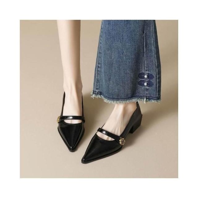 高跟鞋跟鞋女鞋尖頭高跟鞋尖頭單鞋女粗跟法式復古高跟鞋淺口山茶花瑪 淑女鞋工作鞋久站不累腳婚鞋伴娘鞋包鞋增高