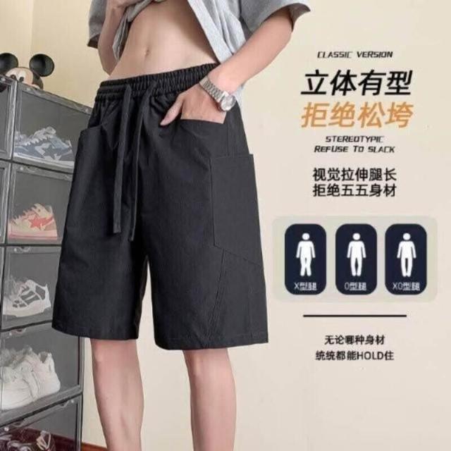 運動短褲男休閒寬鬆五分褲夏天美式多口袋工裝褲男寬褲彈性透氣排汗時尚百搭戶外登山訓練跑步大童5分褲耐磨寬鬆鬆緊腰男裝薄短褲
