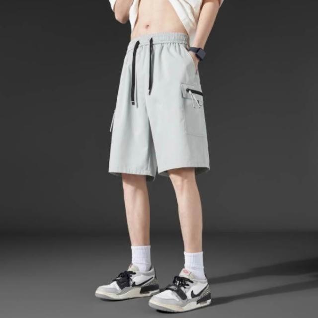 運動短褲男大尺碼寬鬆五分褲休閒褲夏天多口袋工裝褲美式復古寬褲彈性透氣排汗褲戶外登山跑步百搭冰涼褲輕薄5分褲寬鬆薄短褲男生