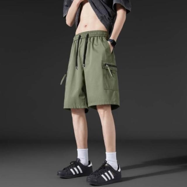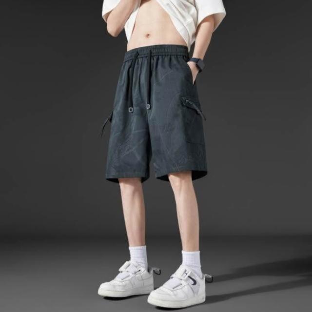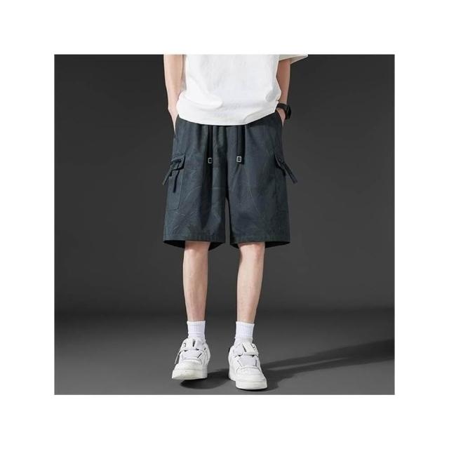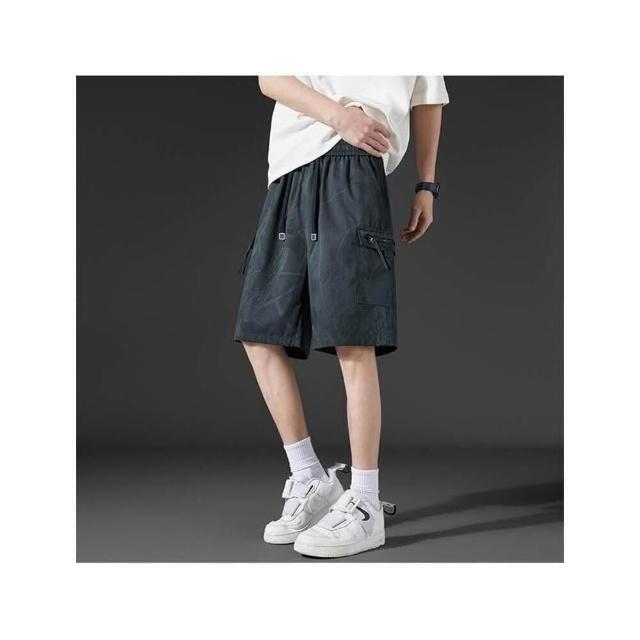 運動短褲男大尺碼寬鬆五分褲休閒褲夏天多口袋工裝褲美式復古寬褲彈性透氣排汗褲戶外登山跑步百搭冰涼褲輕薄5分褲寬鬆薄短褲男生