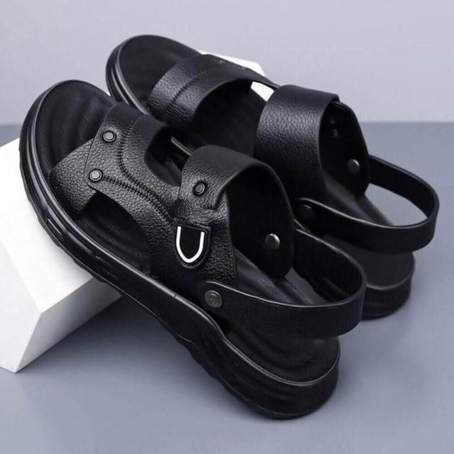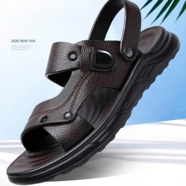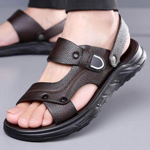 夏季透氣聚氨酯鞋底按摩墊涼鞋沙灘鞋涼拖拖鞋男涼鞋沙灘鞋聚氨酯鞋底按摩墊厚底輕量半拖低幫鞋真皮男鞋抗菌消臭增高運動耐磨足弓防滑舒適包頭拖鞋防磨腳外出拖鞋室外拖鞋夏季透氣按摩墊沙灘鞋