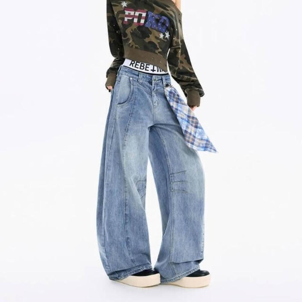 牛仔褲彎刀褲美式復古闊腿褲女彎刀版型寬松香蕉褲男女同款彎刀褲直筒褲闊腿褲緊身褲修身褲煙管褲喇叭褲微喇褲寬鬆褲九分褲長褲