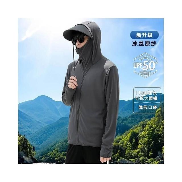 冰絲防曬衣UPF50+涼感衣皮膚衣男開車防曬衫男款防曬衣防紫外線防曬衣面部防曬新款夏季冰絲薄款防曬衣透氣爽感冰絲防曬衣