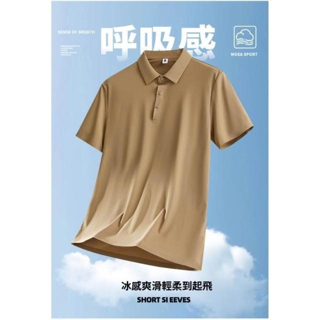 上衣男polo衫冰絲涼感運動上衣透氣短袖大尺碼吸濕排汗休閒短袖速乾上班工作服寬鬆翻領上衣夏季POLO衫男士彈力薄上衣男裝