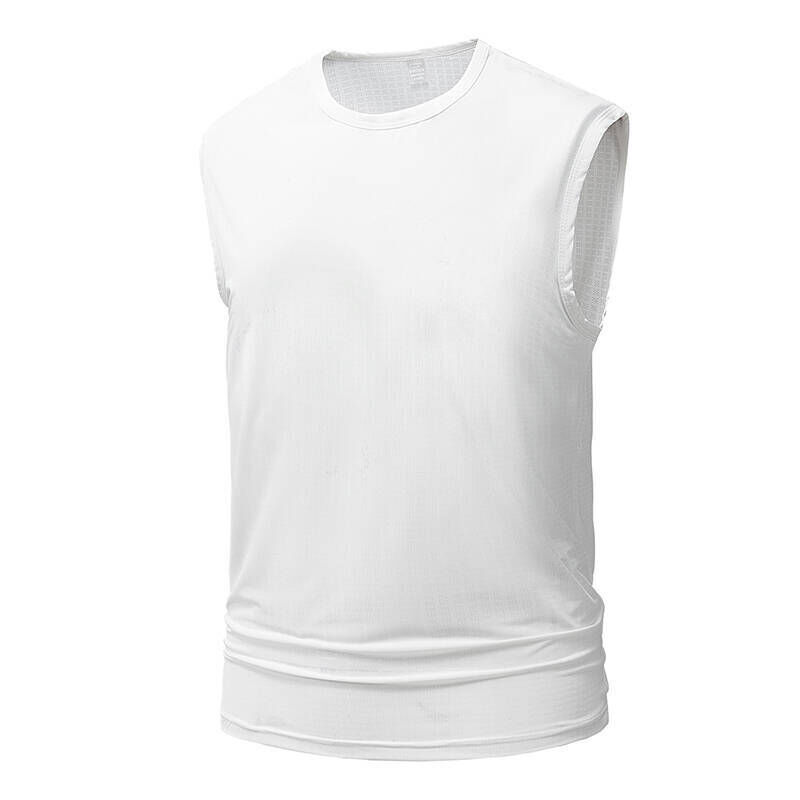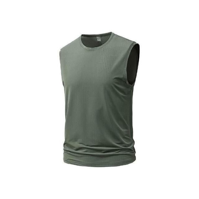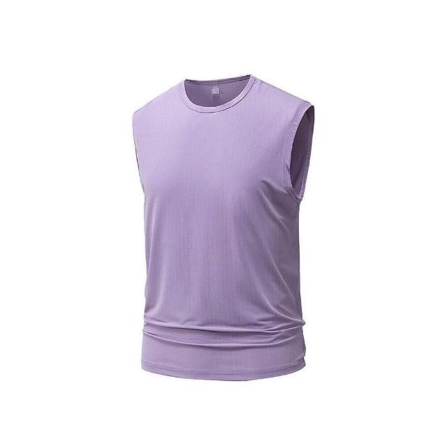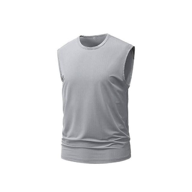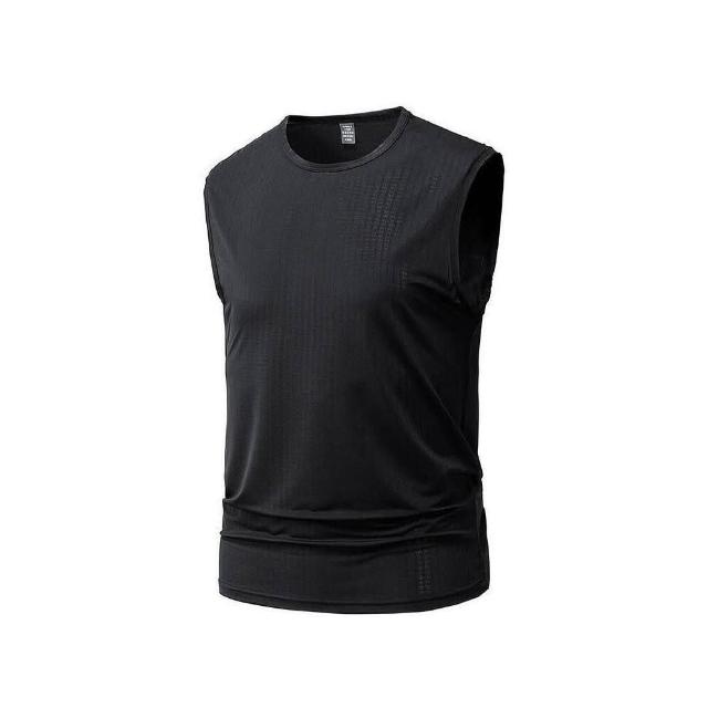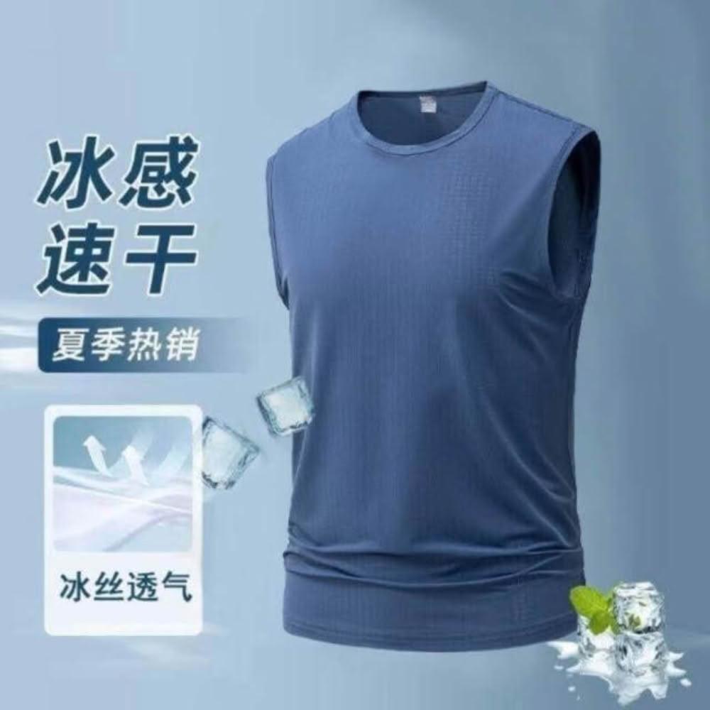 背心男冰絲涼感無袖背心大尺碼圓領t恤冰涼運動上衣戶外登山吸濕排汗寬鬆透氣網眼無袖上衣輕薄彈力速乾T恤男生跑步柔軟垂順背心