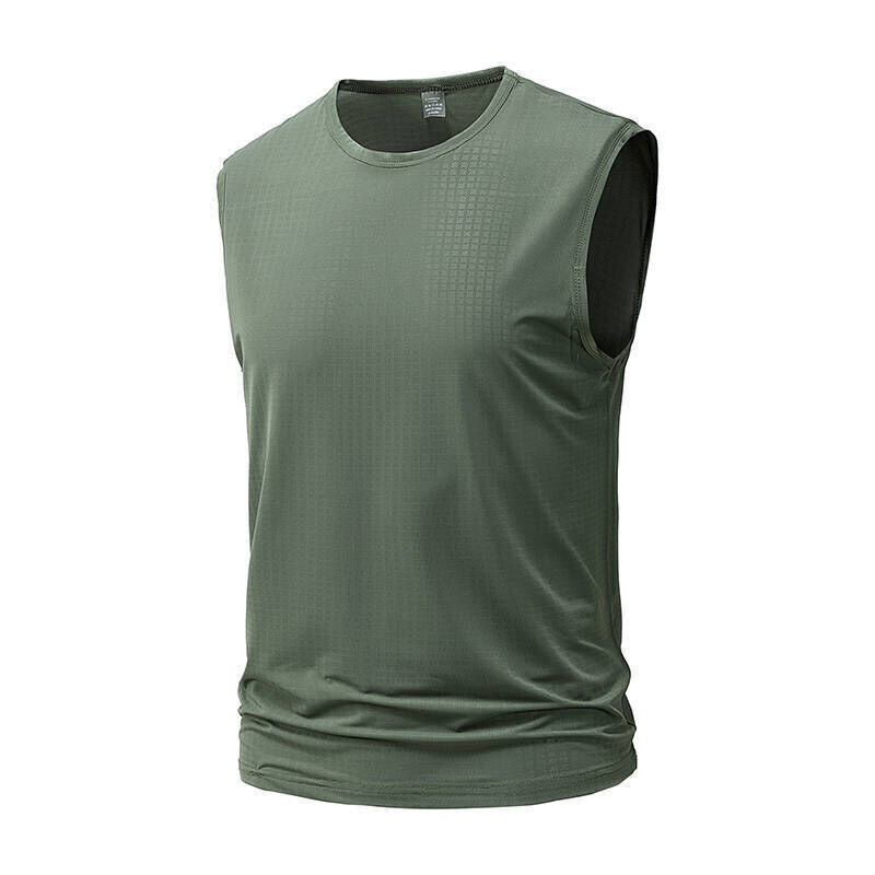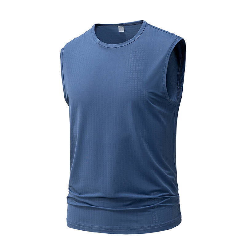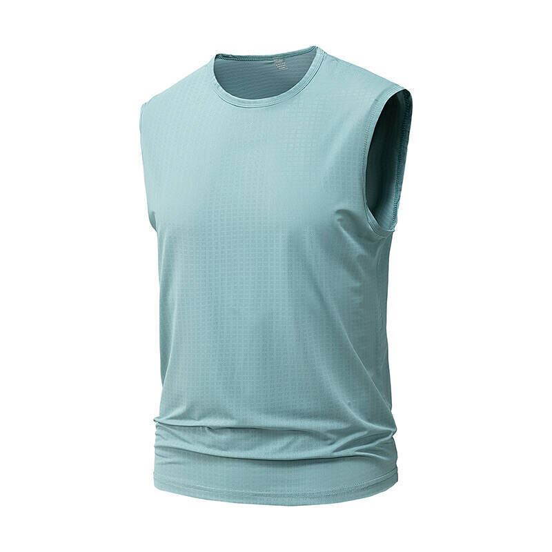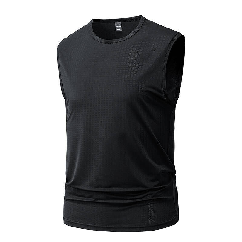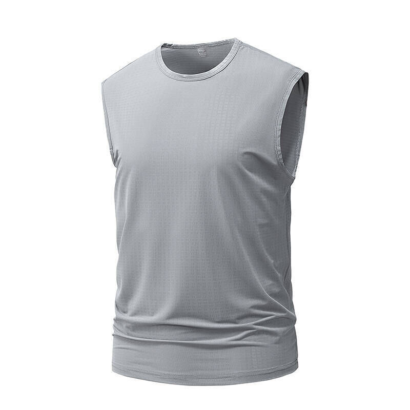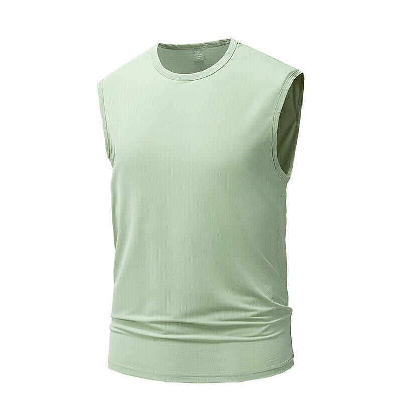 背心男冰絲涼感無袖背心大尺碼圓領t恤冰涼運動上衣戶外登山吸濕排汗寬鬆透氣網眼無袖上衣輕薄彈力速乾T恤男生跑步柔軟垂順背心