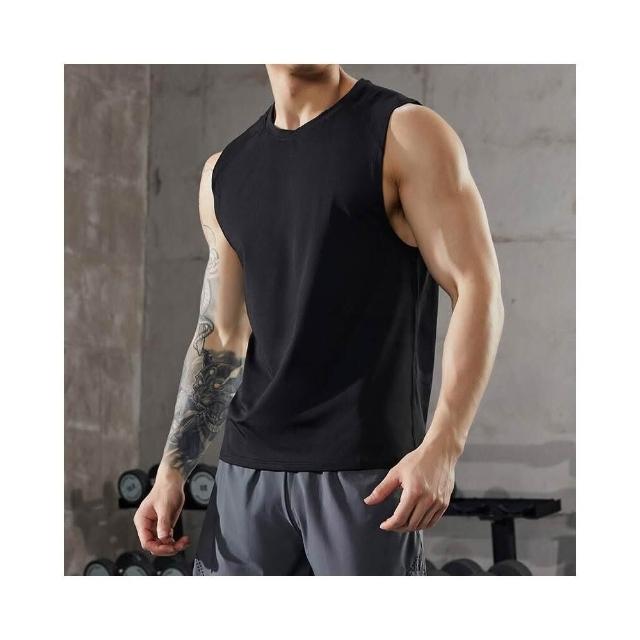 背心男夏季中青年圓領無坎肩寬鬆薄款背心休閑透氣親膚打底衫跑步健身冰絲吸濕排汗運動上衣修身男裝彈性T恤柔軟工作通勤簡約半袖休閒上衣