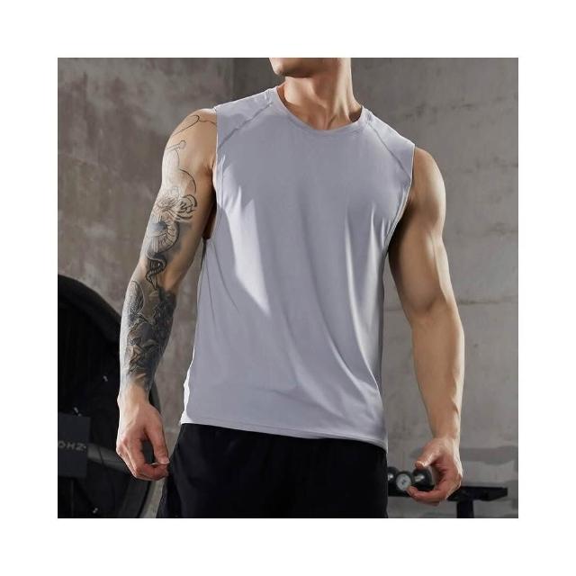 背心男夏季中青年圓領無坎肩寬鬆薄款背心休閑透氣親膚打底衫跑步健身冰絲吸濕排汗運動上衣修身男裝彈性T恤柔軟工作通勤簡約半袖休閒上衣