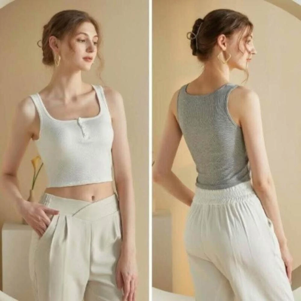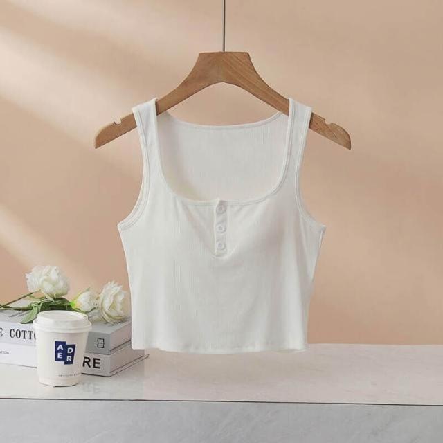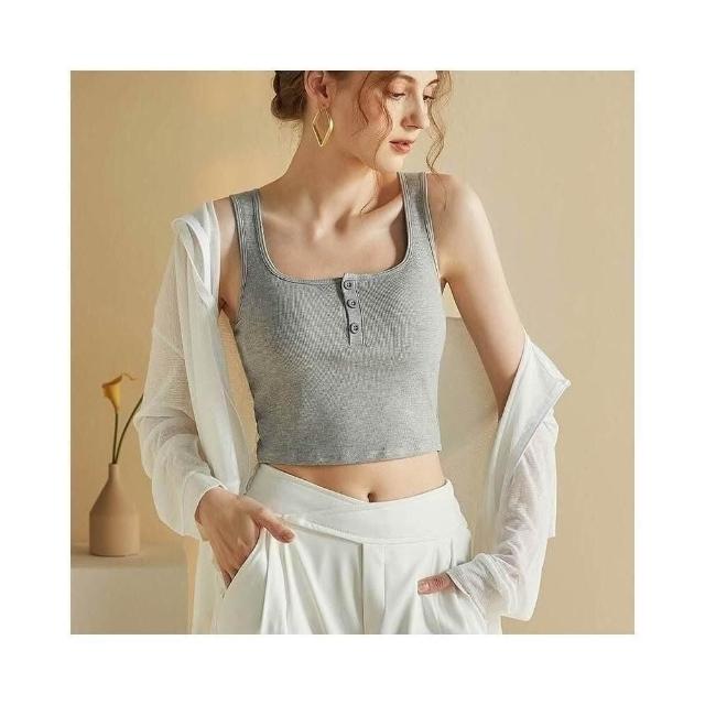背心女款夏季洋氣半開紐扣帶胸墊背心女內搭修身純棉小吊帶外穿美背打底方領上衣時尚顯瘦舒適修身親膚透氣無坎肩運動背心夏季外穿內搭上衣修身打底一體式女裝