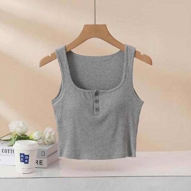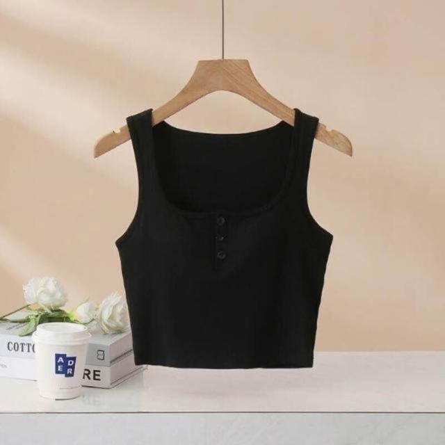 背心女款夏季洋氣半開紐扣帶胸墊背心女內搭修身純棉小吊帶外穿美背打底方領上衣時尚顯瘦舒適修身親膚透氣無坎肩運動背心夏季外穿內搭上衣修身打底一體式女裝