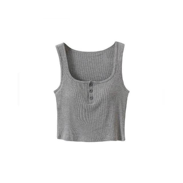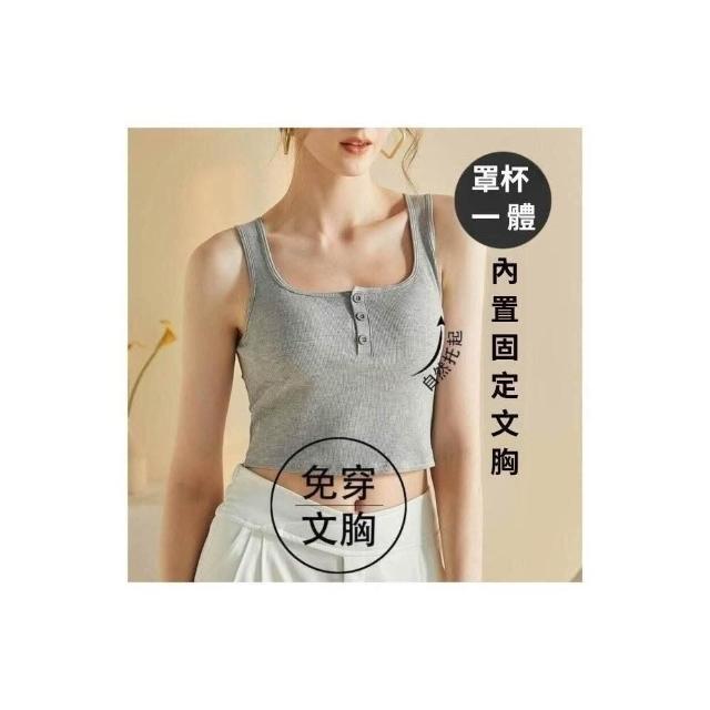 背心女款夏季洋氣半開紐扣帶胸墊背心女內搭修身純棉小吊帶外穿美背打底方領上衣時尚顯瘦舒適修身親膚透氣無坎肩運動背心夏季外穿內搭上衣修身打底一體式女裝