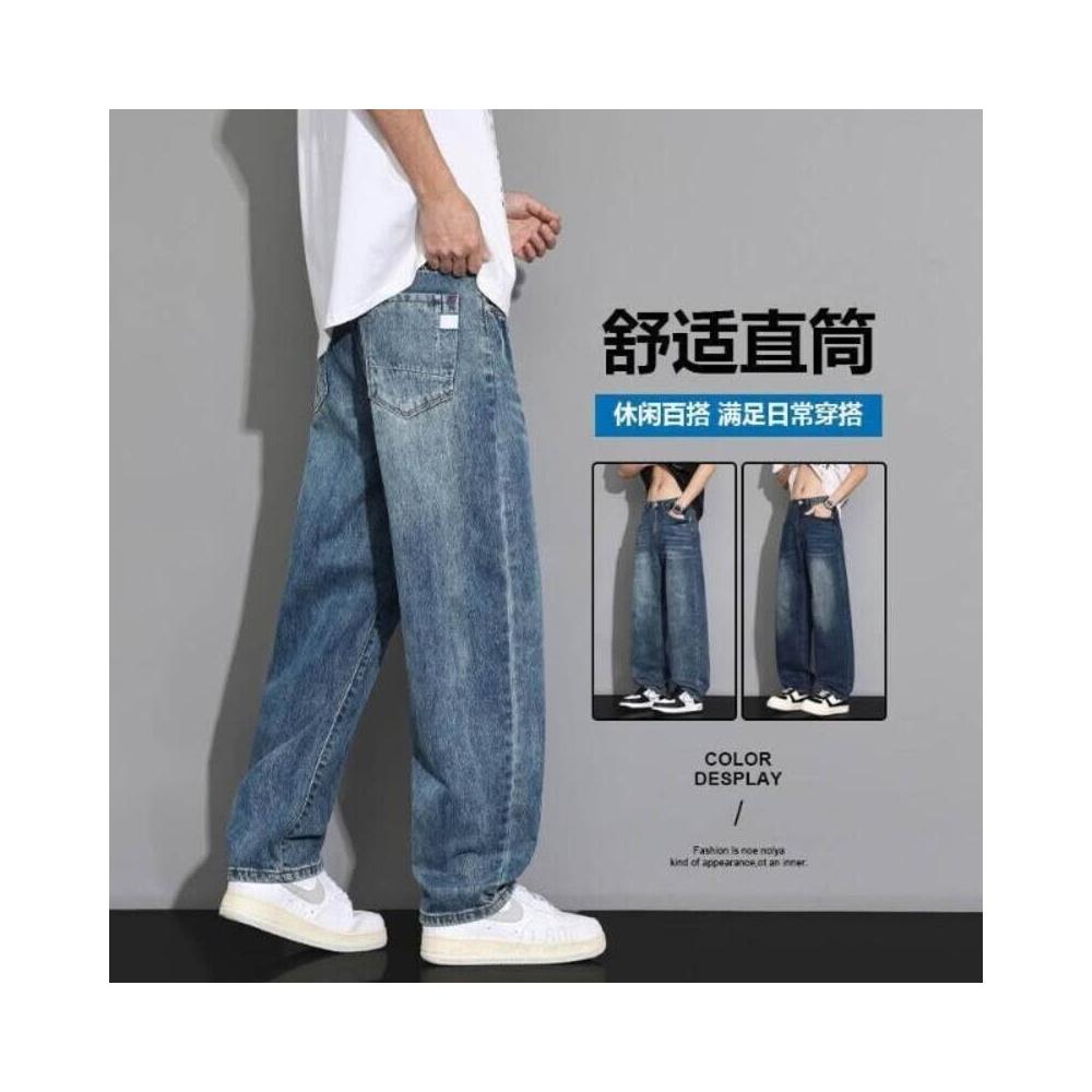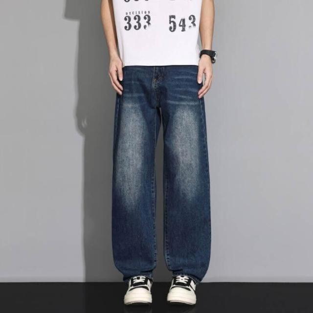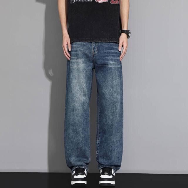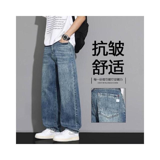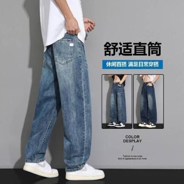 牛仔褲男寬鬆工裝褲低腰直筒褲復古休閒褲薄款闊腿褲堆堆褲素色水洗拖地寬褲耐磨透氣登山褲大尺碼男長褲彎刀褲工作褲運動長褲美式復古做舊牛仔褲男夏潮牌水洗藍闊腿褲子高街百搭休閑直筒長褲