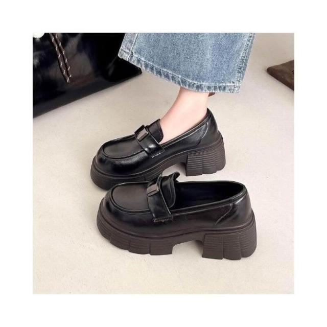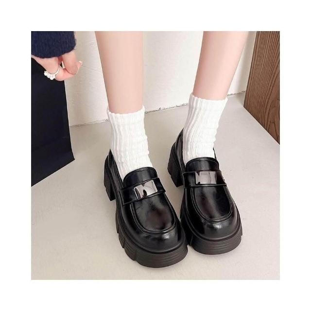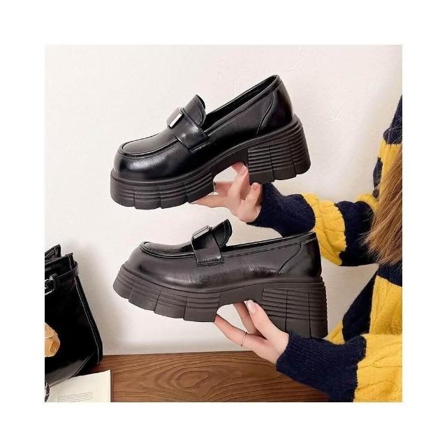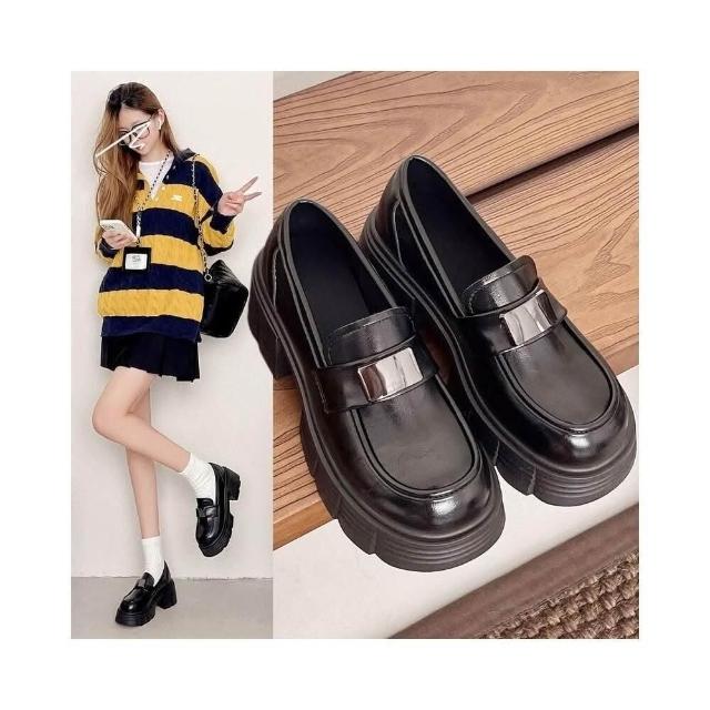 樂福鞋女學生復古韓國寬楦休閑鞋輕量低跟時尚百搭舒適涼鞋防水防滑大尺碼厚底娃娃鞋大童學院風瑪麗珍黑色增高女鞋一脚蹬媽媽鞋子