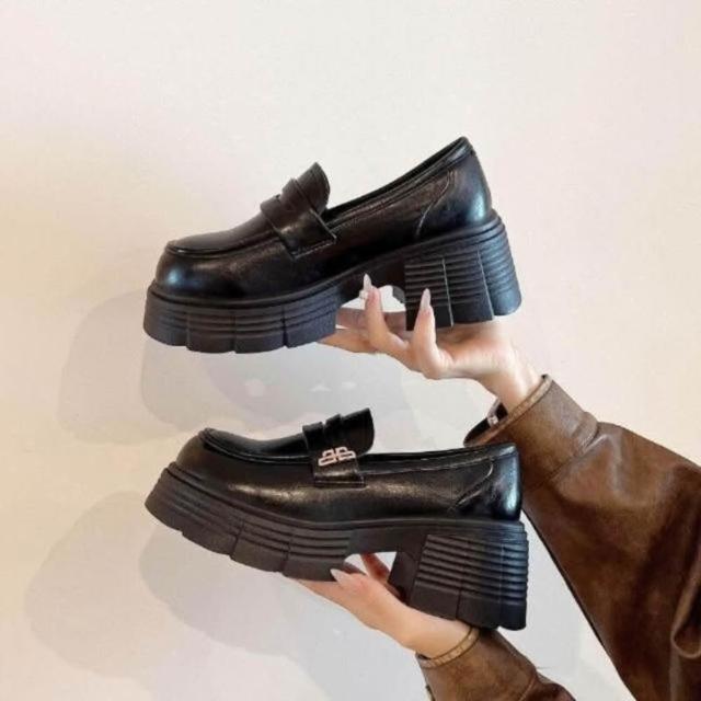 樂福鞋女學生復古韓國寬楦真皮休閑鞋輕量中跟舒適時尚百搭涼鞋厚底防水防滑大尺碼娃娃鞋學院風瑪麗珍黑色增高女鞋一脚蹬媽媽鞋子