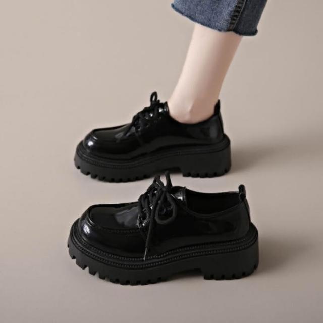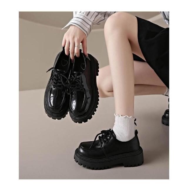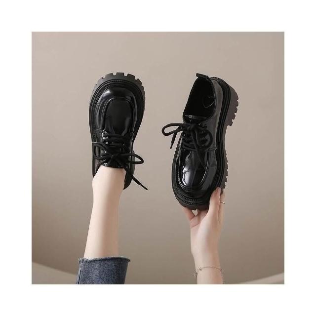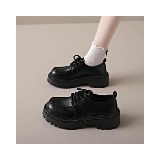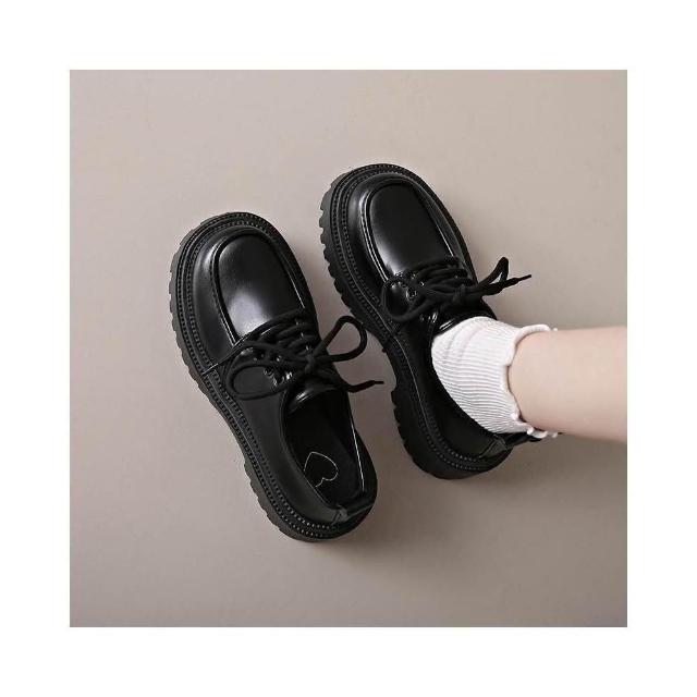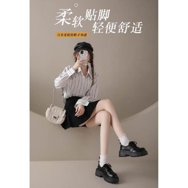 樂福鞋女學生復古韓國寬楦休閑鞋輕量低跟舒適時尚真皮涼鞋厚底防水防滑大尺碼娃娃鞋大童學院風瑪麗珍黑色增高女鞋一脚蹬媽媽鞋子