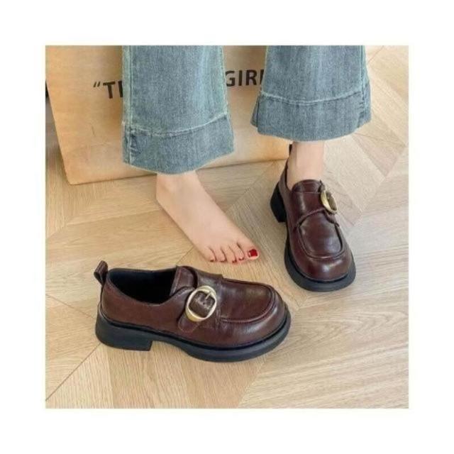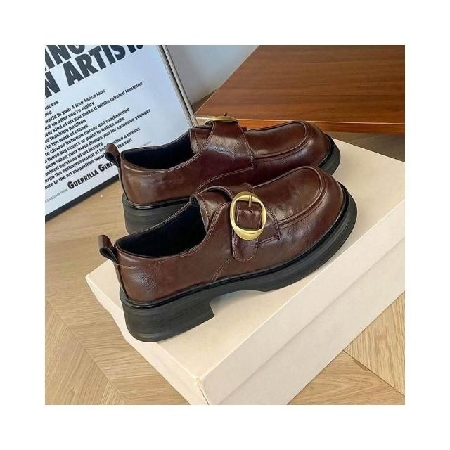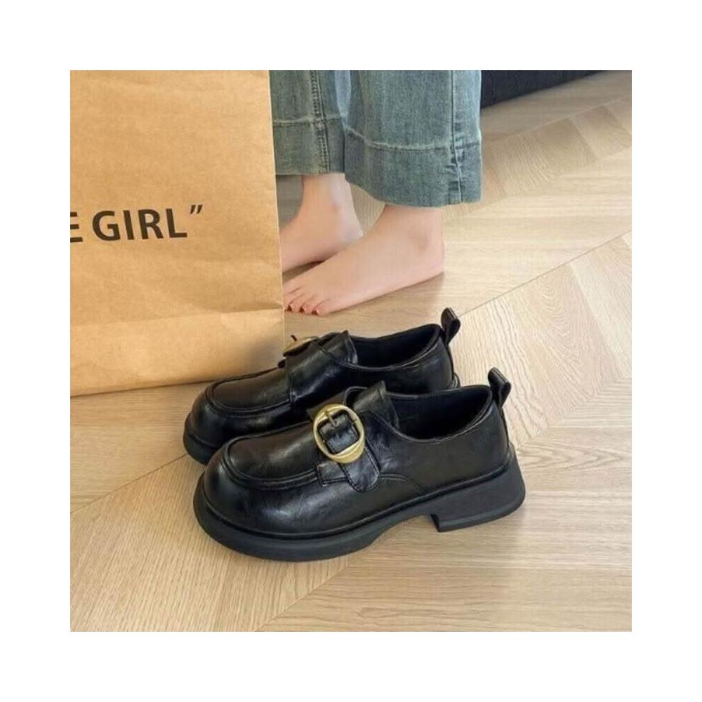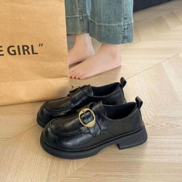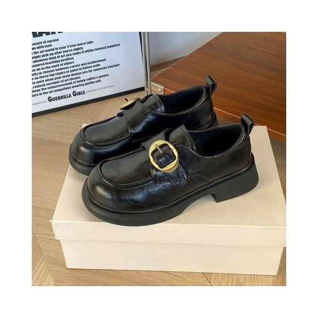 樂福鞋女學生復古韓國寬楦低跟休閑鞋輕量舒適時尚百搭涼鞋厚底防水防滑大尺碼娃娃鞋大童學院風瑪麗珍黑色增高女鞋一脚蹬媽媽鞋子