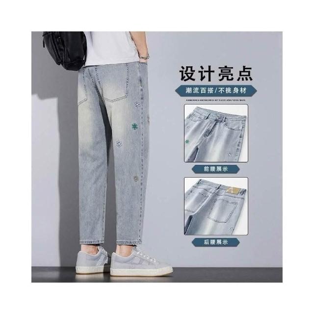彎刀褲牛仔褲 牛仔褲春夏新潮復古懷舊九分男潮牌刺繡微哈倫褲男學生時尚百搭潮流休閑9分褲子輕商務簡約時尚百搭彈力舒適爸爸辦公工作褲