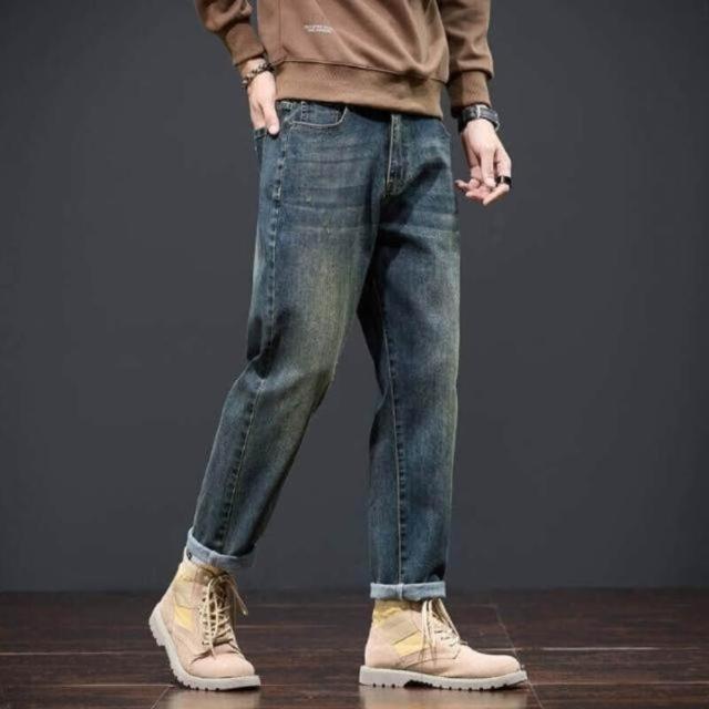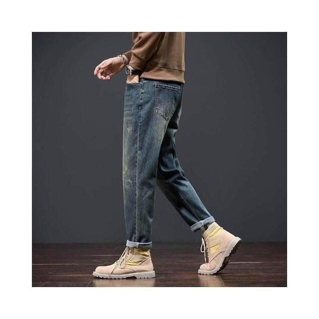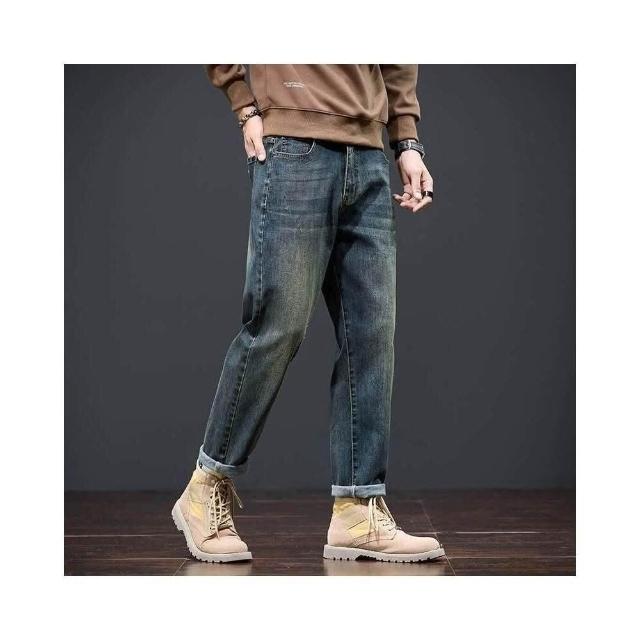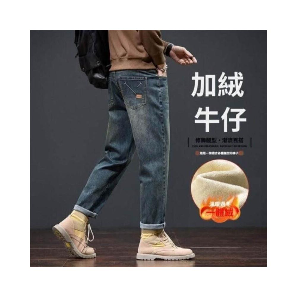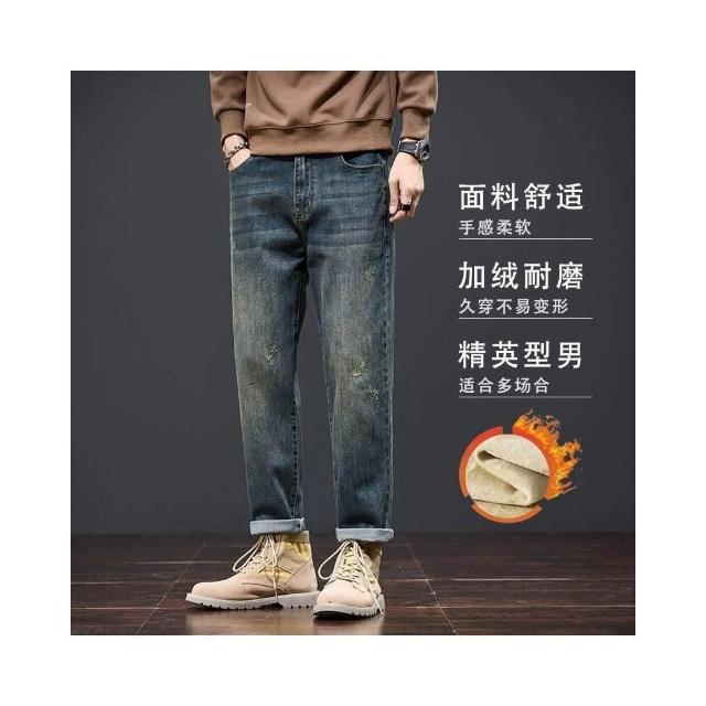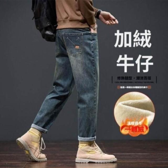彎刀褲牛仔褲 牛仔褲復古保暖加厚男時尚冬季長褲秋冬寬松直筒錐形顯高顯瘦百搭牛仔休閑褲冬季彈力美式柔軟舒適爸爸保暖工作褲彈性防風運動長褲