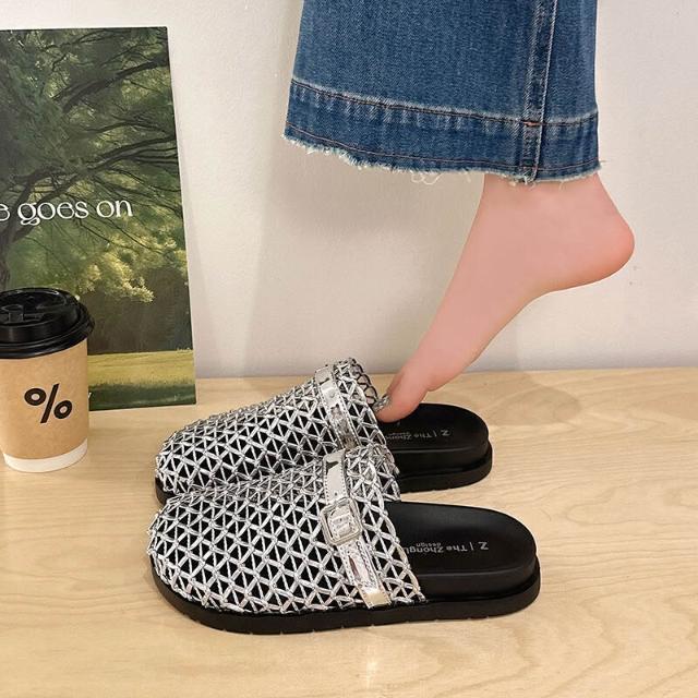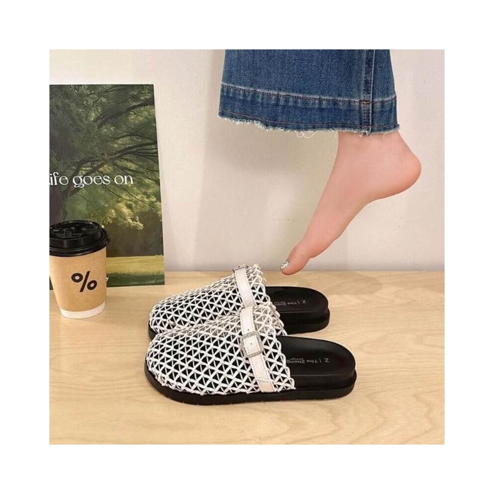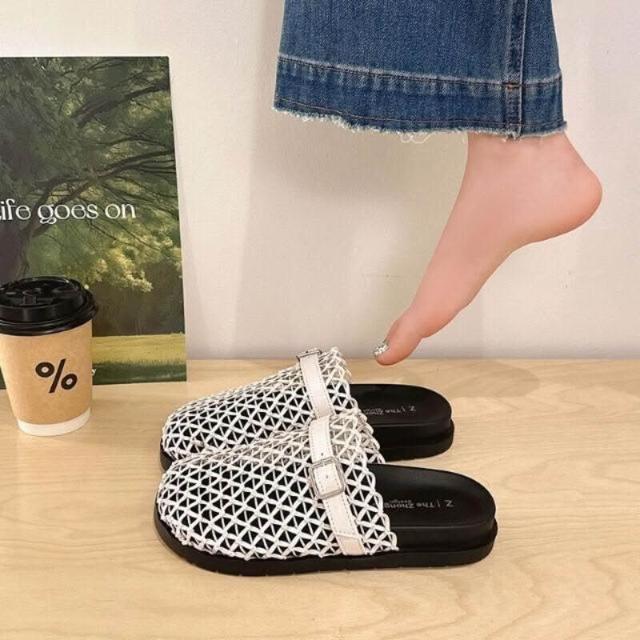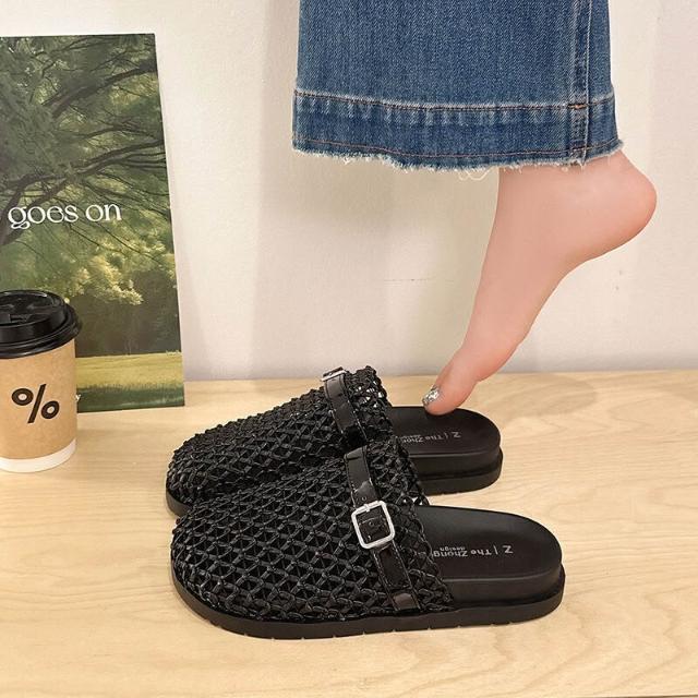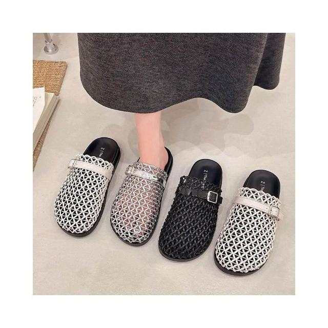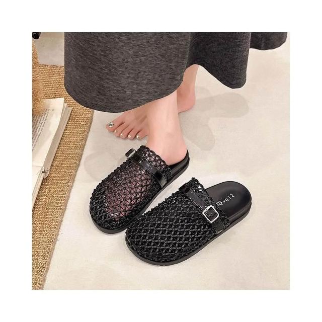編織涼鞋女夏季寬楦舒適運動拖鞋增高防滑耐磨厚底涼鞋韓國黑色羅馬鞋輕量透氣涼拖鞋一腳蹬懶人鞋勃肯鞋厚底鞋沙灘鞋大尺碼女涼鞋