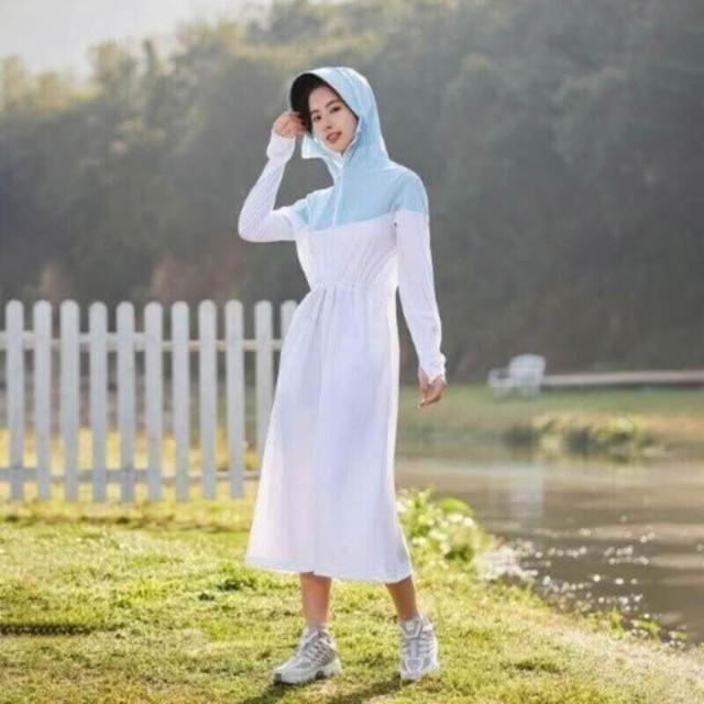 防曬衣涼感衣防曬外套顯瘦遮肚寬鬆通勤雪紡百搭春夏媽媽穿搭 UPF100+連衣裙長款防曬衣大帽檐時尚碎花女輕薄透氣防紫外線輕盈透氣全身防護通勤洋裝度假百搭女溫柔風大尺碼