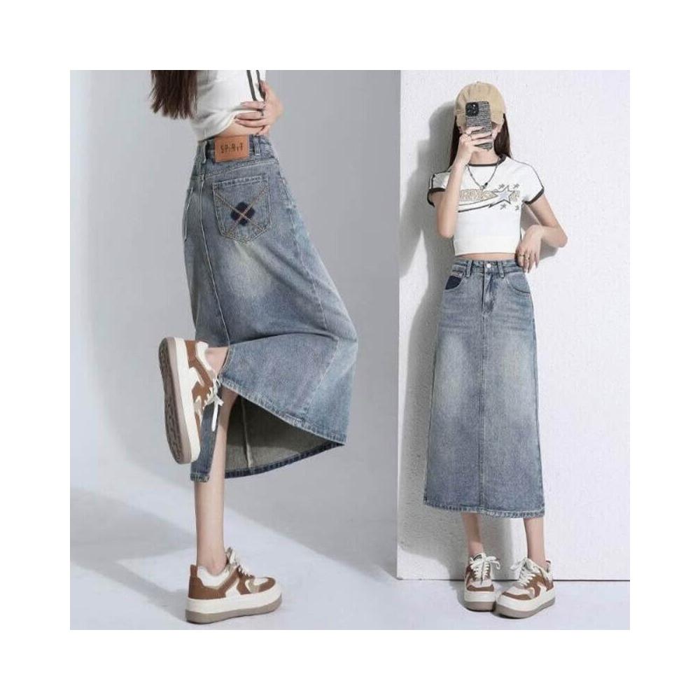 半身裙女高腰牛仔春夏a字中長款開叉顯瘦包臀裙子辣妹長裙裙子通勤牛仔長裙女高腰顯瘦遮肉直筒開叉復古韓系百搭日常長裙
