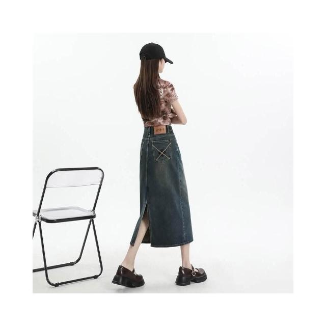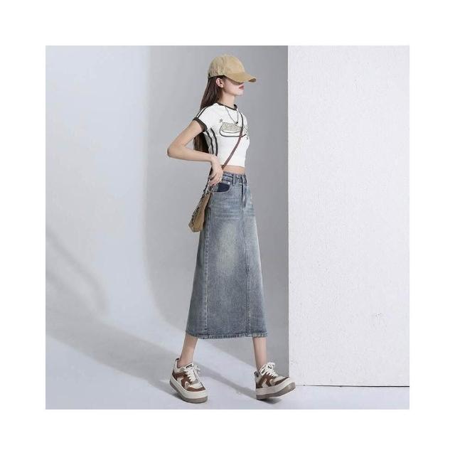 半身裙女高腰牛仔春夏a字中長款開叉顯瘦包臀裙子辣妹長裙裙子通勤牛仔長裙女高腰顯瘦遮肉直筒開叉復古韓系百搭日常長裙
