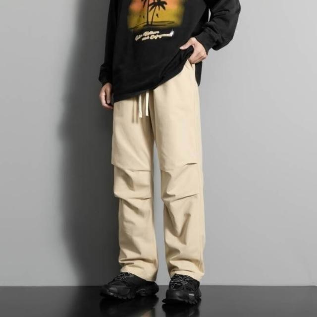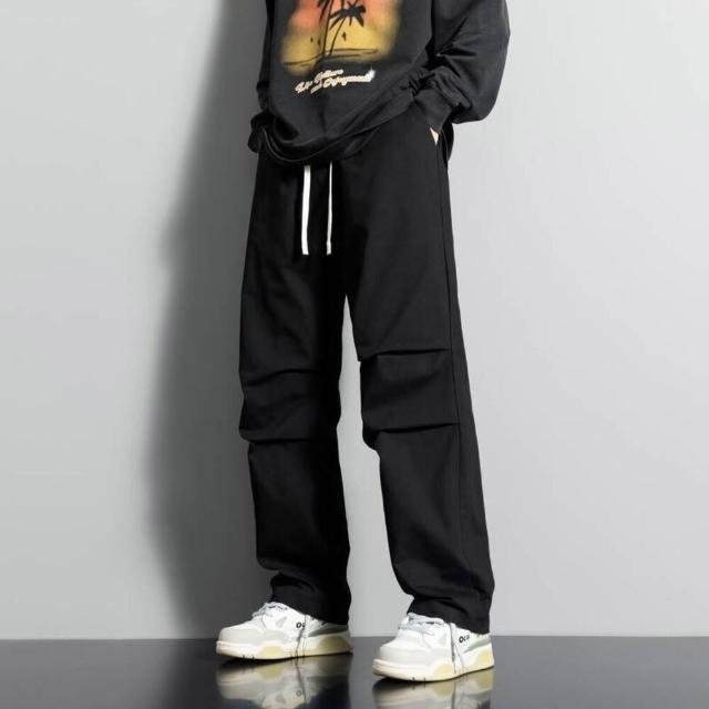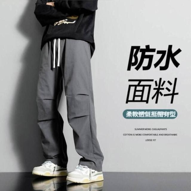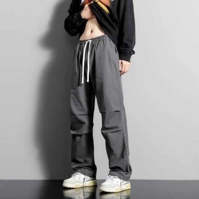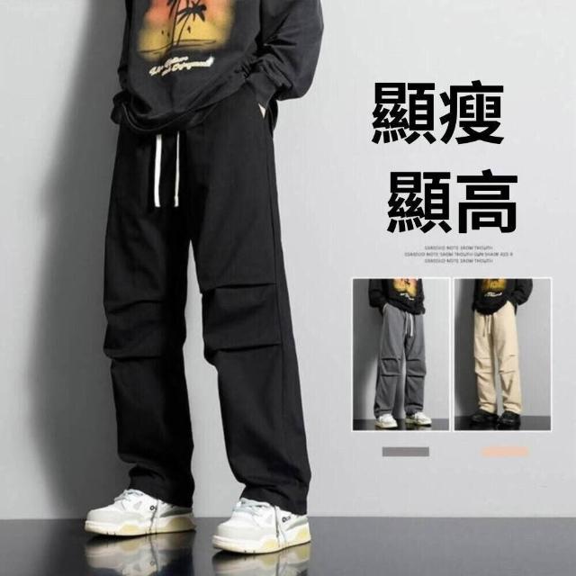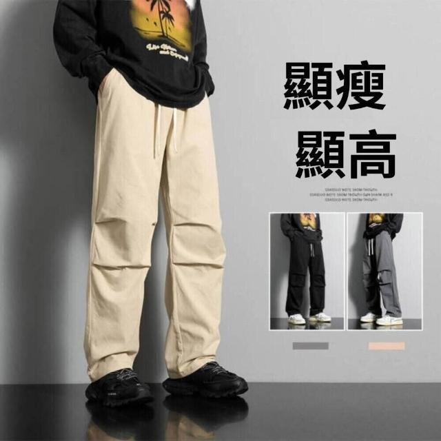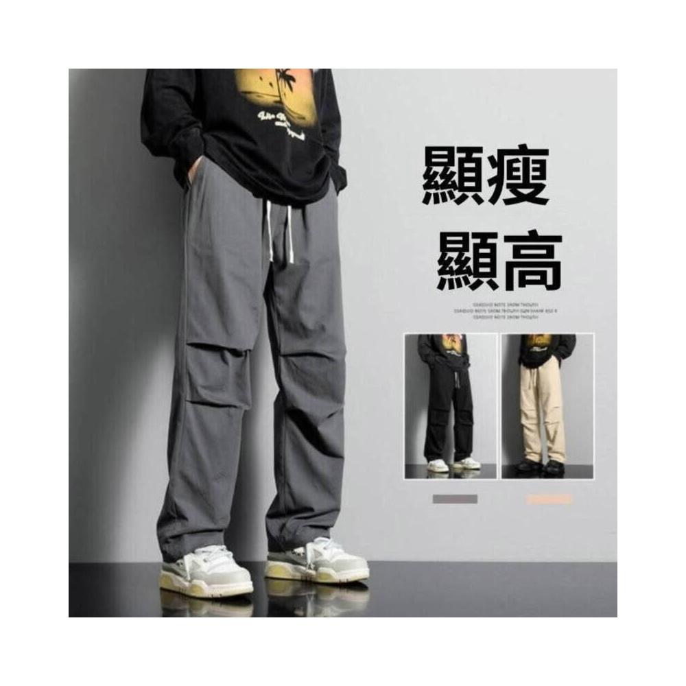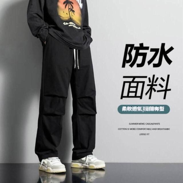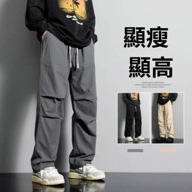 台灣現貨大尺碼傘兵褲春裝褲子男士休閑褲新款秋季運動褲寬松直筒拖地褲港風百搭純色長褲戶外工裝褲男裝下著運動褲冰絲直筒寬鬆女褲彈力不起球柔軟涼感寬褲