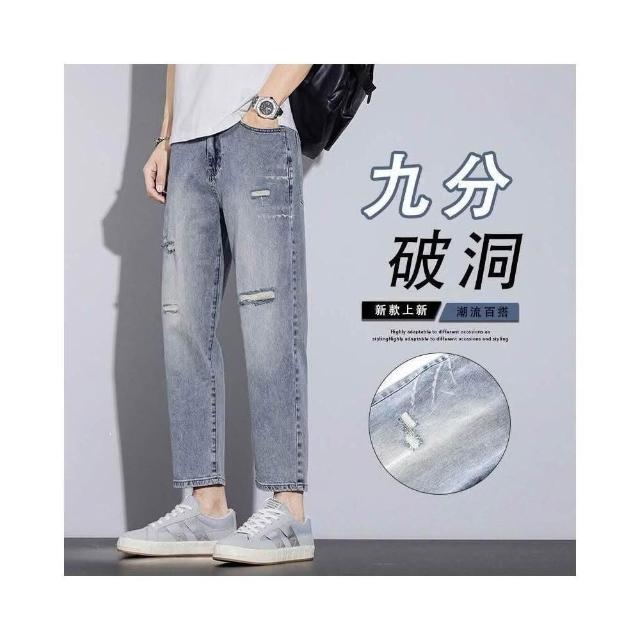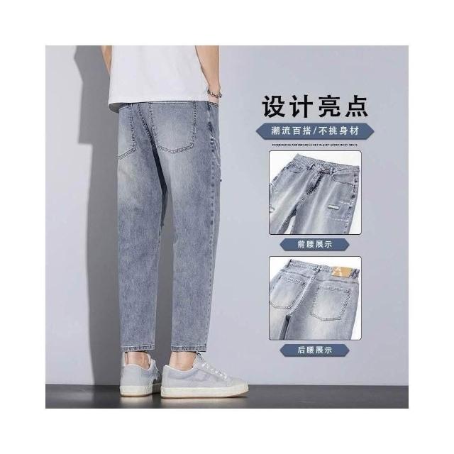 彎刀褲牛仔褲 冰感薄款九分牛仔褲男春夏潮流時尚棉彈休閑褲男士百搭青少淺色潮男褲子直筒褲-大呎碼商務直筒褲微喇褲美式柔軟舒適爸爸工作褲