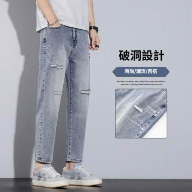 彎刀褲牛仔褲 冰感薄款九分牛仔褲男春夏潮流時尚棉彈休閑褲男士百搭青少淺色潮男褲子直筒褲-大呎碼商務直筒褲微喇褲美式柔軟舒適爸爸工作褲