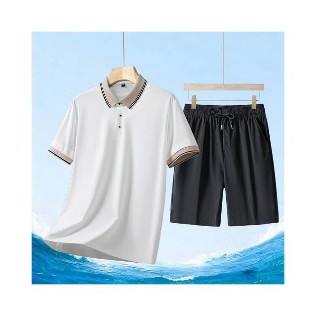 運動套裝男polo衫短袖上衣大尺碼涼感衣短褲吸濕排汗衣薄冰絲短袖T恤褲子休閒套裝羽球衣服高爾夫球衣男生登山透氣速乾褲子 夏天中年爸爸男裝兩件套居家舒適套裝運動寬短褲兩件式套裝跑步健身衣寬鬆t恤防曬褲