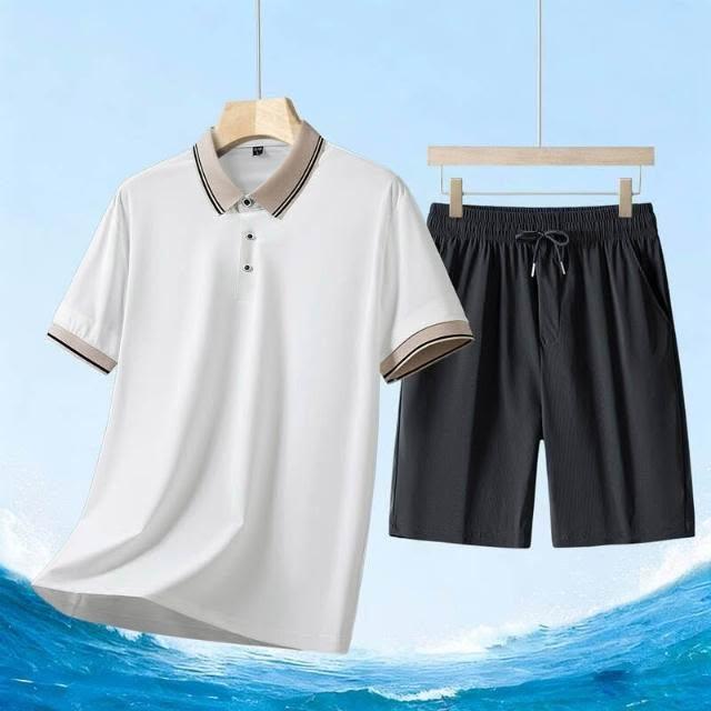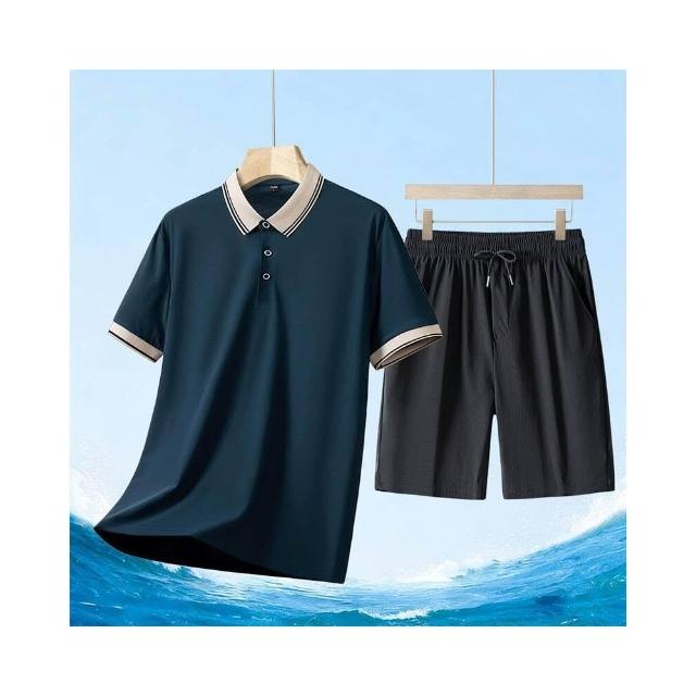 運動套裝男polo衫短袖上衣大尺碼涼感衣短褲吸濕排汗衣薄冰絲短袖T恤褲子休閒套裝羽球衣服高爾夫球衣男生登山透氣速乾褲子 夏天中年爸爸男裝兩件套居家舒適套裝運動寬短褲兩件式套裝跑步健身衣寬鬆t恤防曬褲