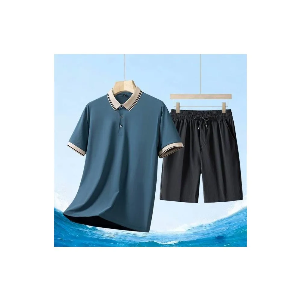 運動套裝男polo衫短袖上衣大尺碼涼感衣短褲吸濕排汗衣薄冰絲短袖T恤褲子休閒套裝羽球衣服高爾夫球衣男生登山透氣速乾褲子 夏天中年爸爸男裝兩件套居家舒適套裝運動寬短褲兩件式套裝跑步健身衣寬鬆t恤防曬褲