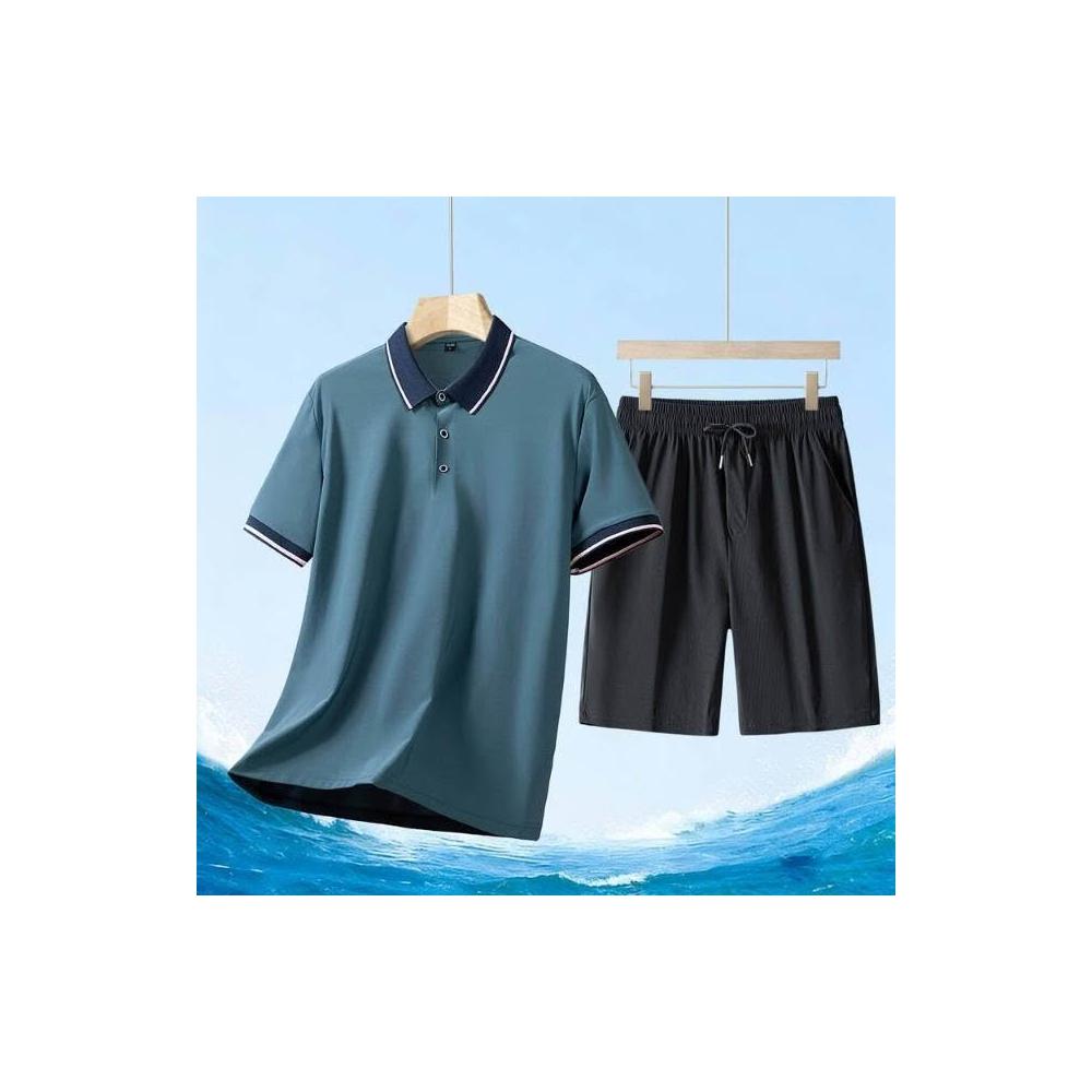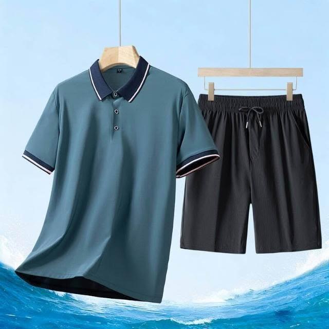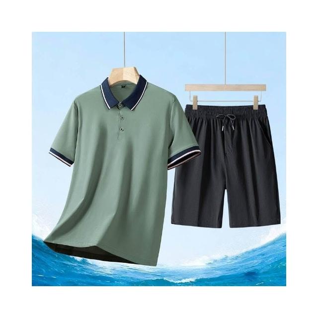 運動套裝男polo衫短袖上衣大尺碼涼感衣短褲吸濕排汗衣薄冰絲短袖T恤褲子休閒套裝羽球衣服高爾夫球衣男生登山透氣速乾褲子 夏天中年爸爸男裝兩件套居家舒適套裝兩件式套裝跑步健身衣寬鬆t恤防曬褲運動寬短褲