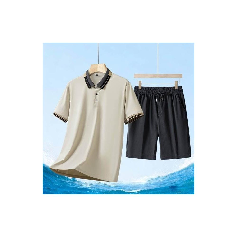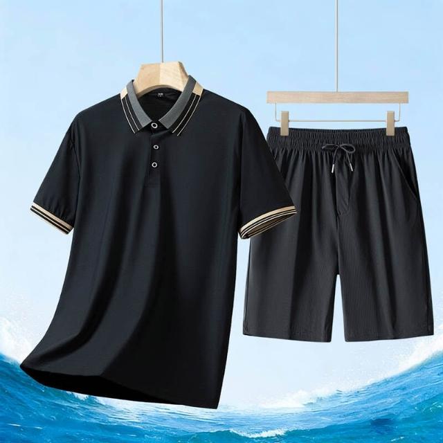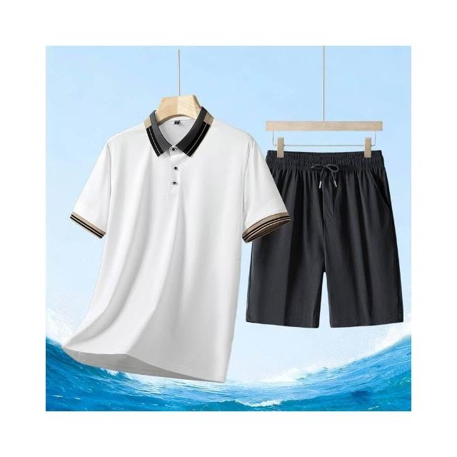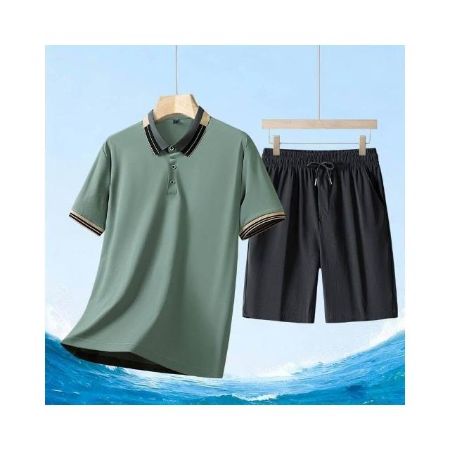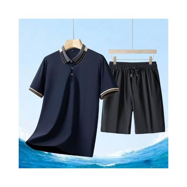運動套裝男polo衫短袖上衣大尺碼涼感衣短褲吸濕排汗衣薄冰絲短袖T恤褲子休閒套裝男生羽球衣服高爾夫球衣登山透氣速乾褲子 夏天中年爸爸男裝兩件套居家舒適套裝運動寬短褲兩件式套裝跑步健身衣寬鬆t恤防曬褲